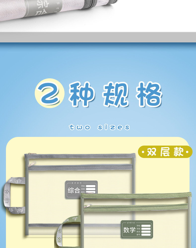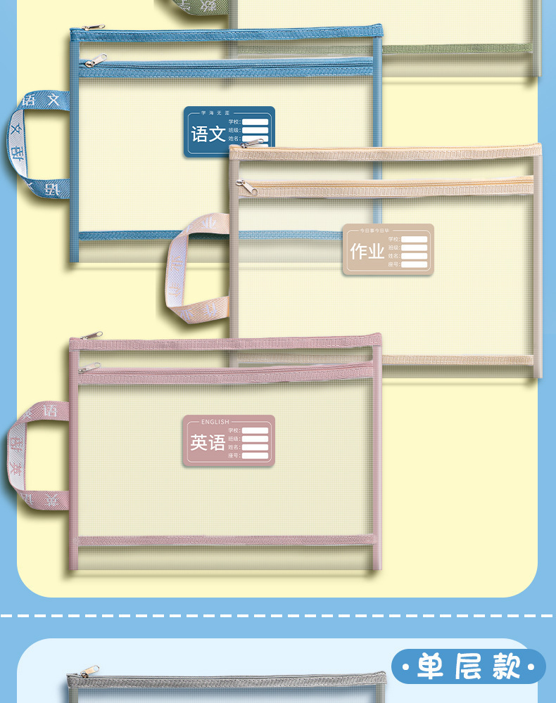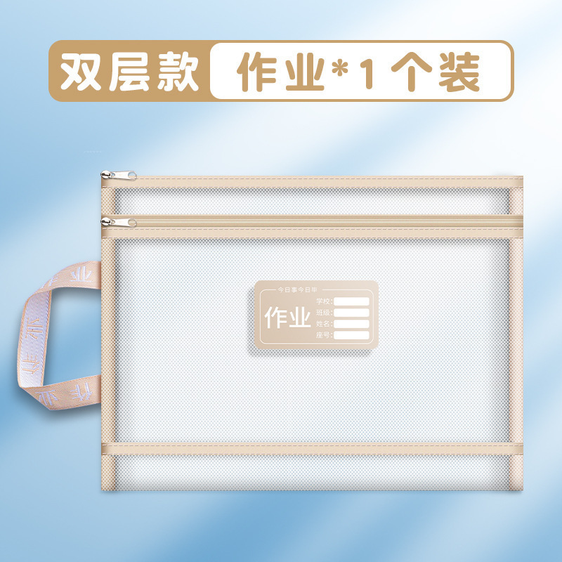 더블 레이어 메쉬 주제 분류 가방 나일론 메쉬 주제 가방 파일 가방 학생 시험지 가방 숙제 보관 가방스토어 가기