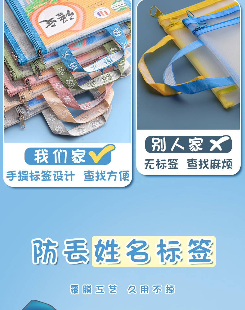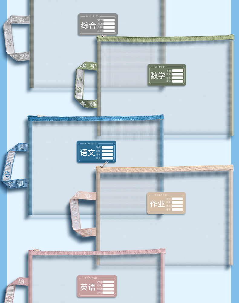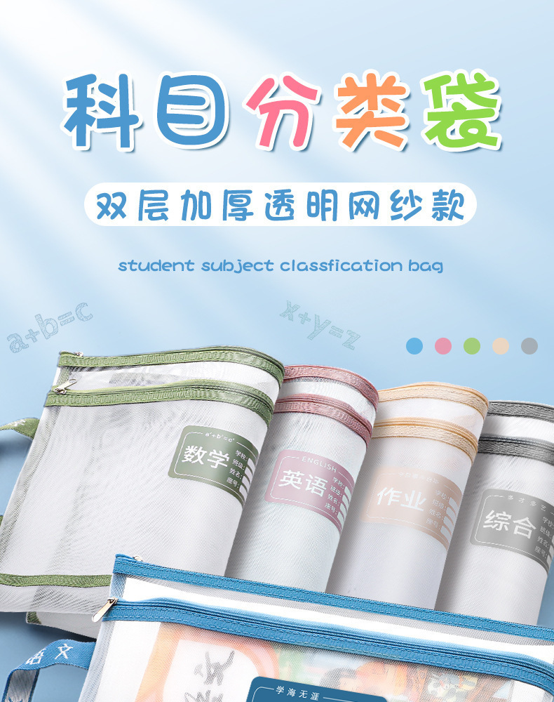 더블 레이어 메쉬 주제 분류 가방 나일론 메쉬 주제 가방 파일 가방 학생 시험지 가방 숙제 보관 가방