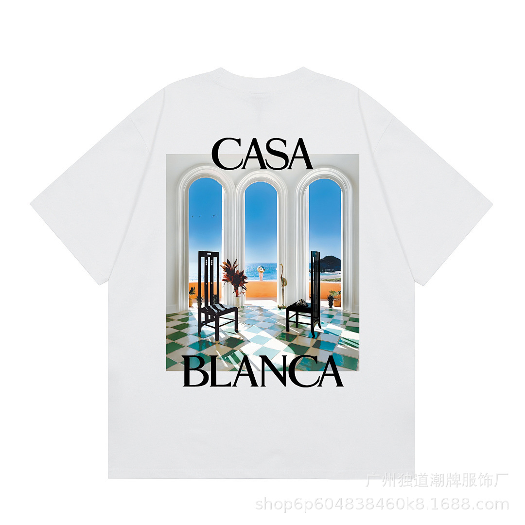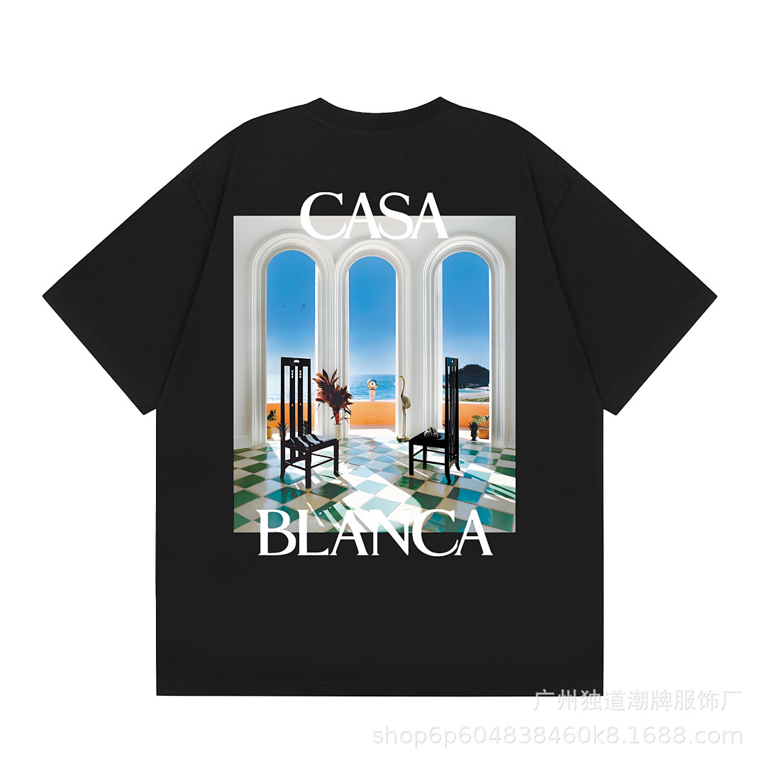Casa American 트렌디 브랜드 온라인 반팔 남성 커플 ins 여름 슈퍼 핫 티셔츠 여성 탑 반팔 루즈 유럽 버전스토어 가기