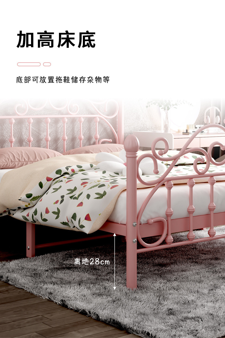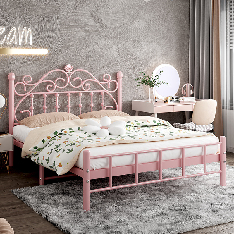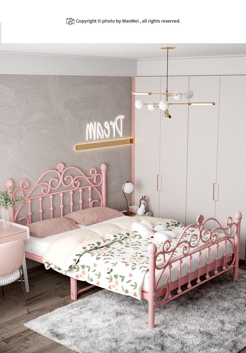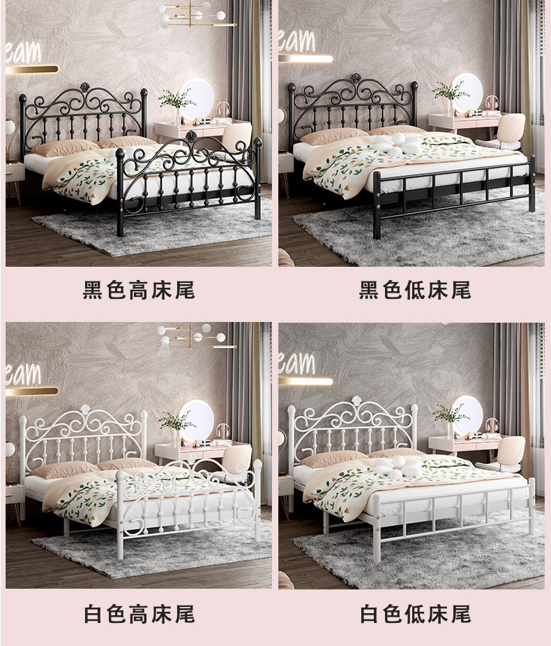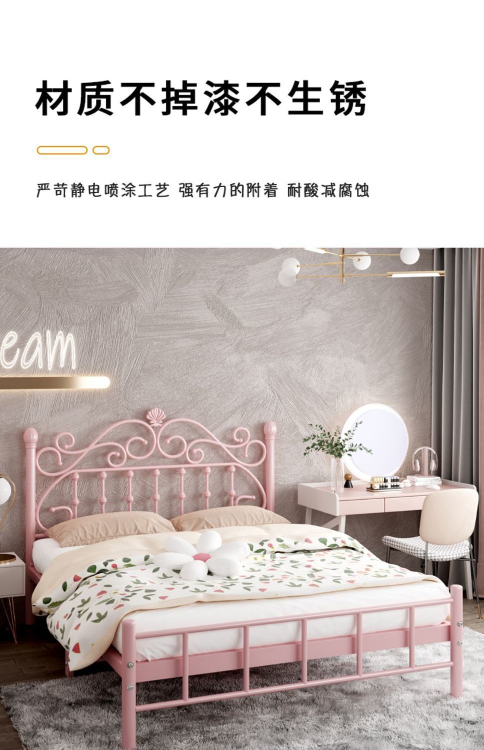 두껍고 강화된 단철 침대, 심플하고 모던한 공주 침대, 인터넷 연예인.미터 더블 침대, 북유럽 싱글 미터 철제 프레임 침대스토어 가기