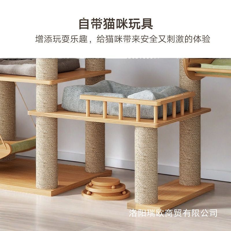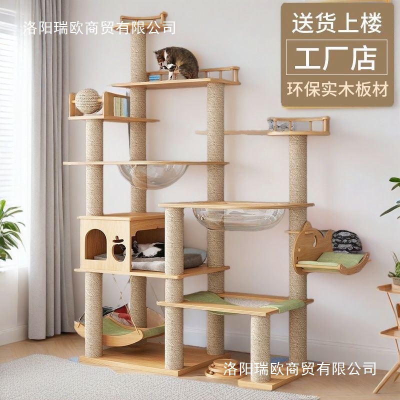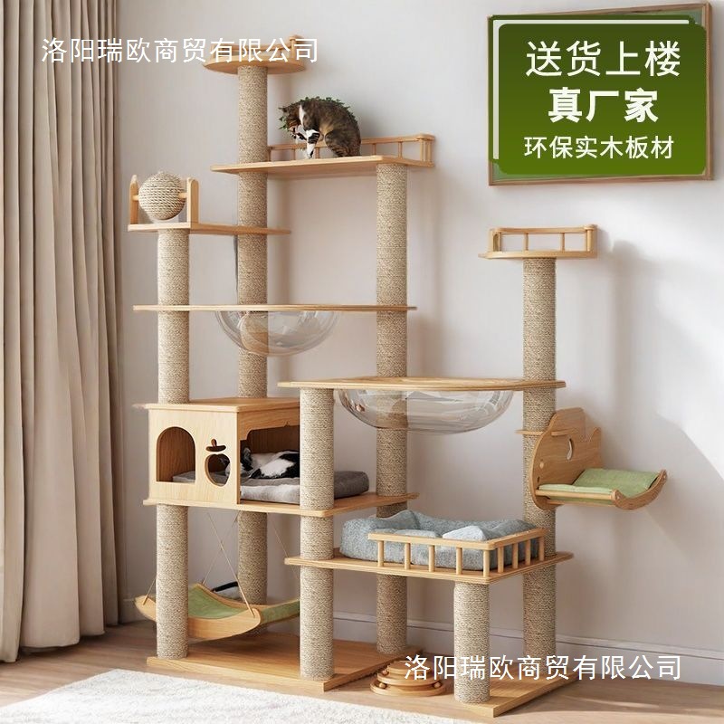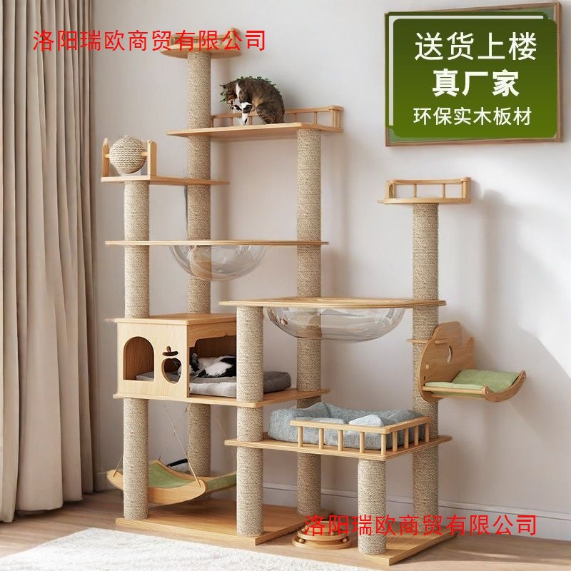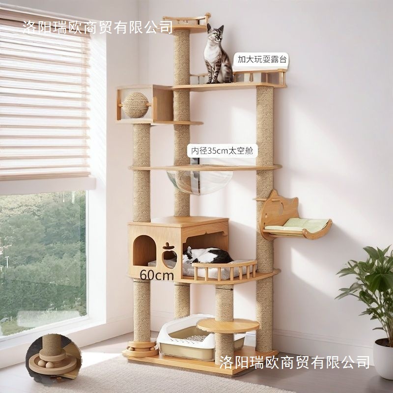 대형 원목 고양이 클라이밍 프레임, 올인원, 사계절 사용 가능, 대형 고양이 스크래치 보드, 우주 캡슐, 뚱뚱한 고양이 장난감 스크래치 컬럼, 내마모성