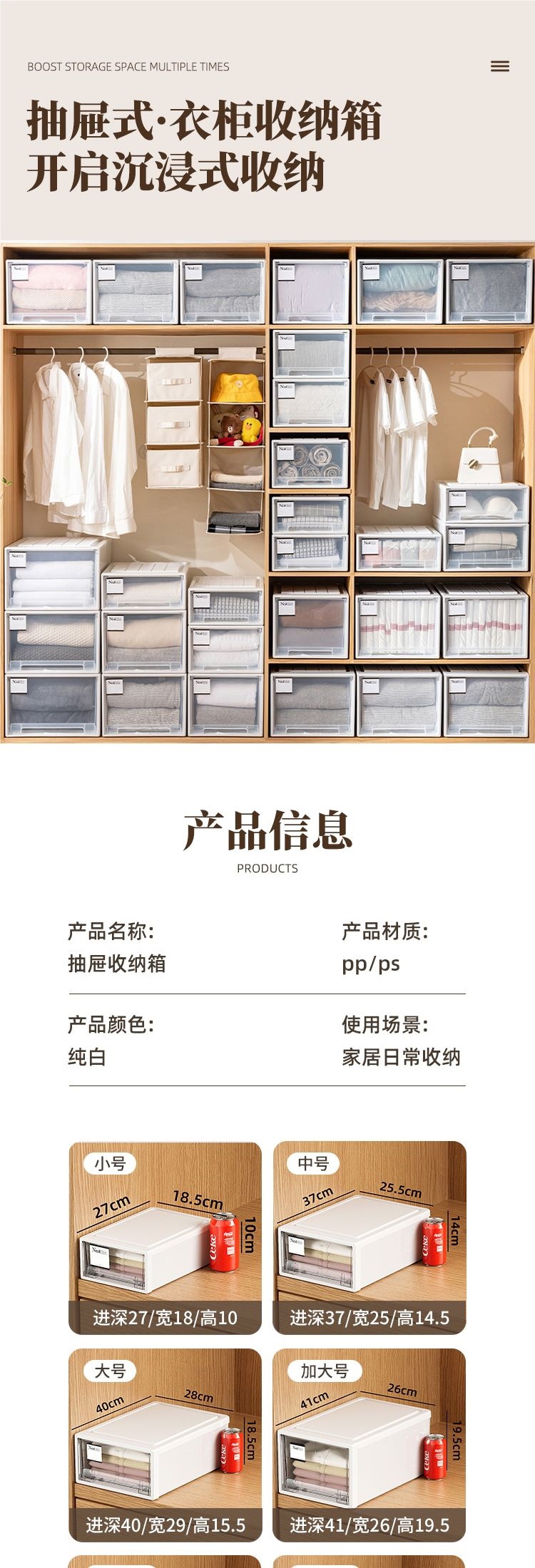 두꺼운 서랍형 수납장 대용량 투명 수납함 옷장 속옷 의류 정리 수납함스토어 가기