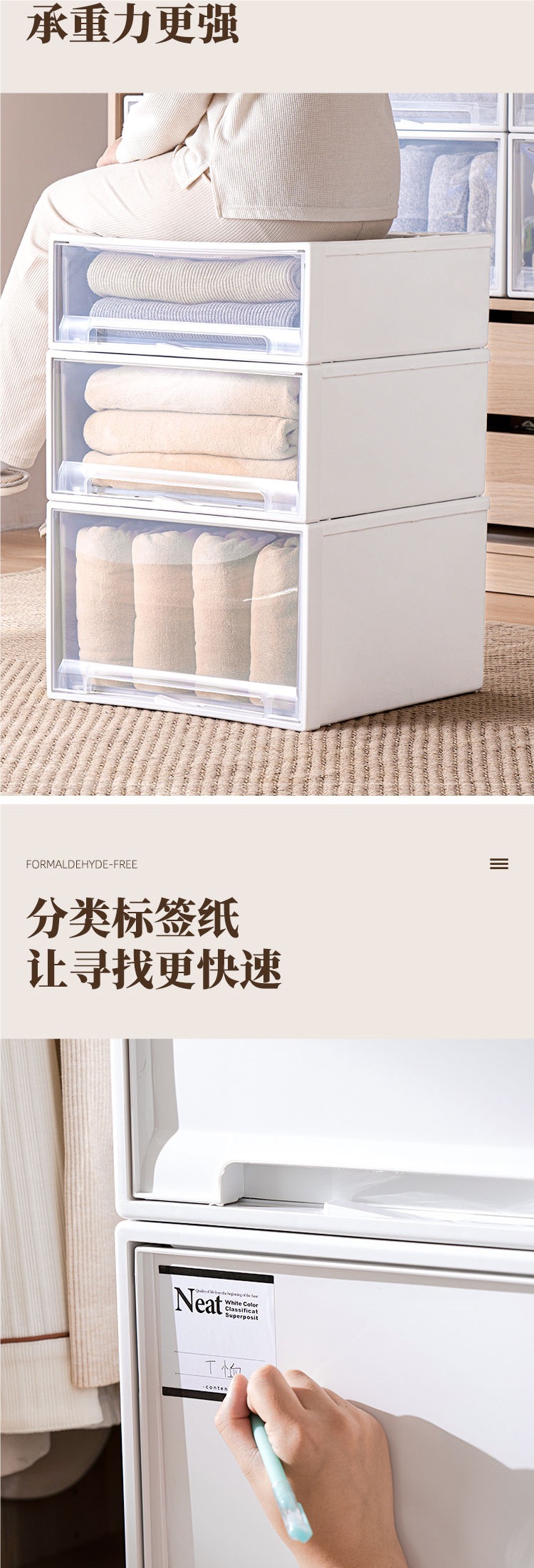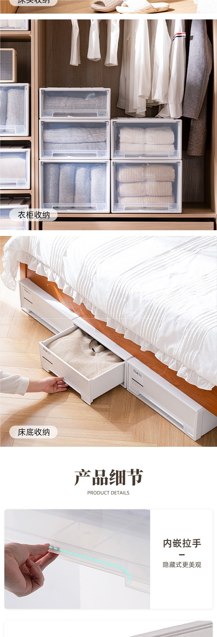두꺼운 서랍형 수납장 대용량 투명 수납함 옷장 속옷 의류 정리 수납함