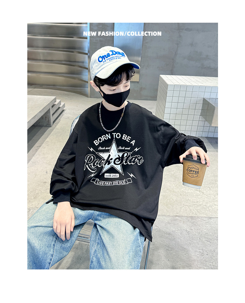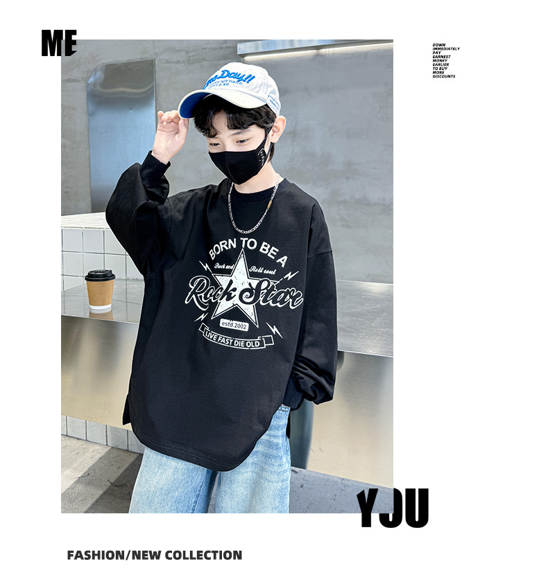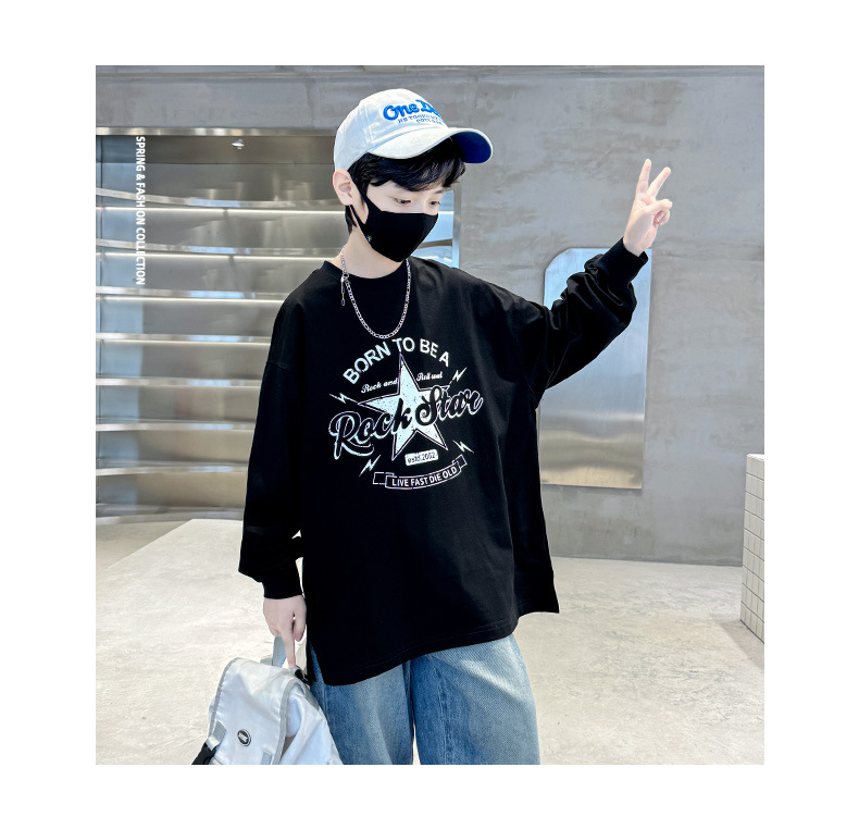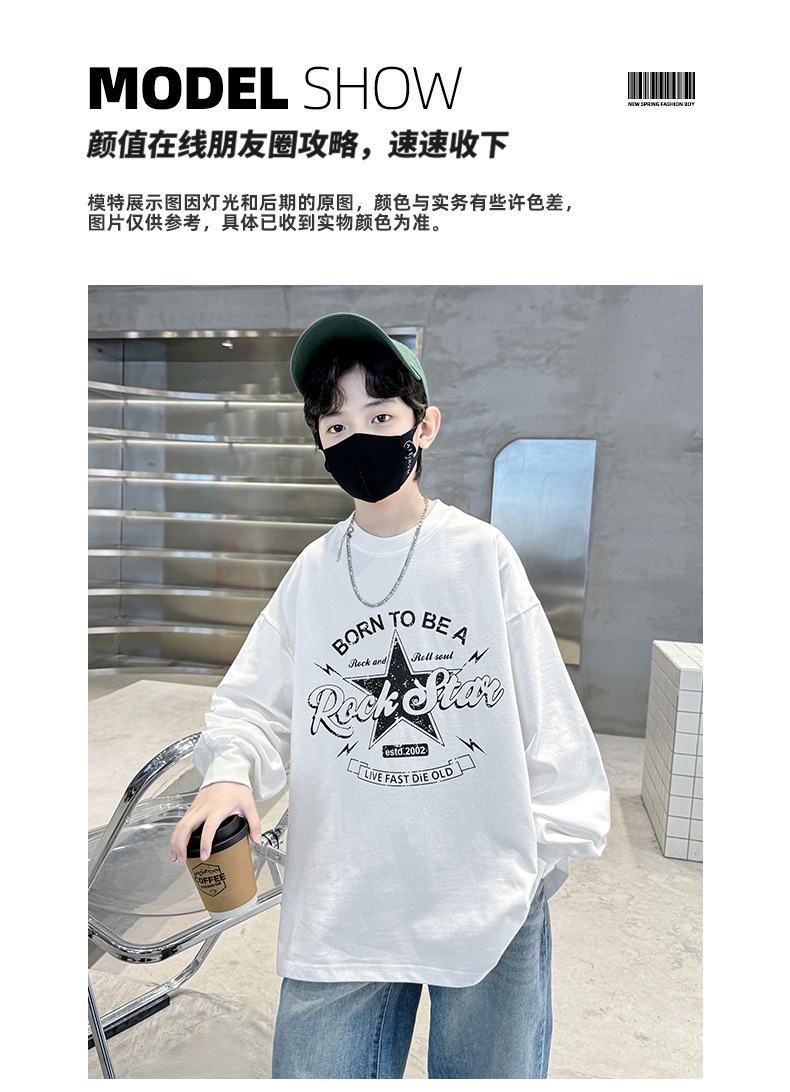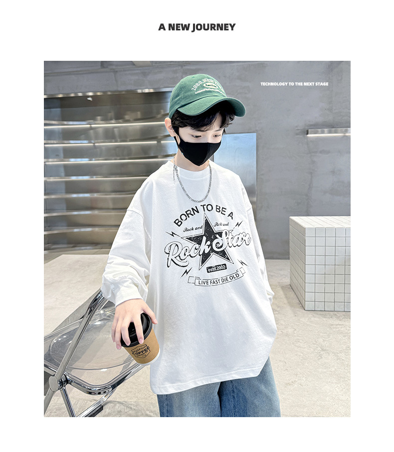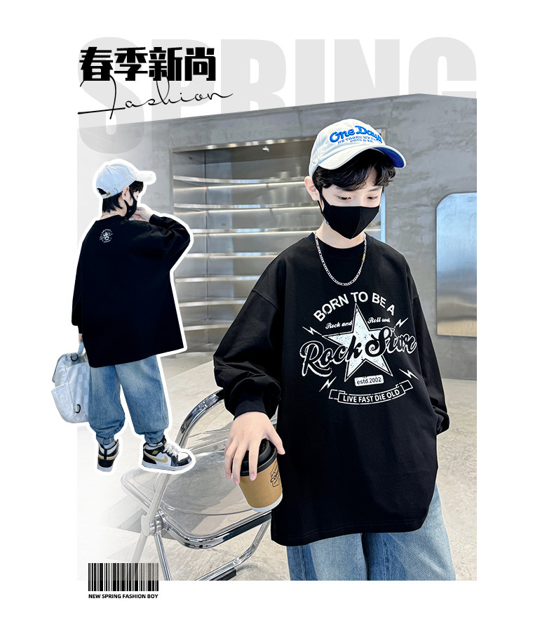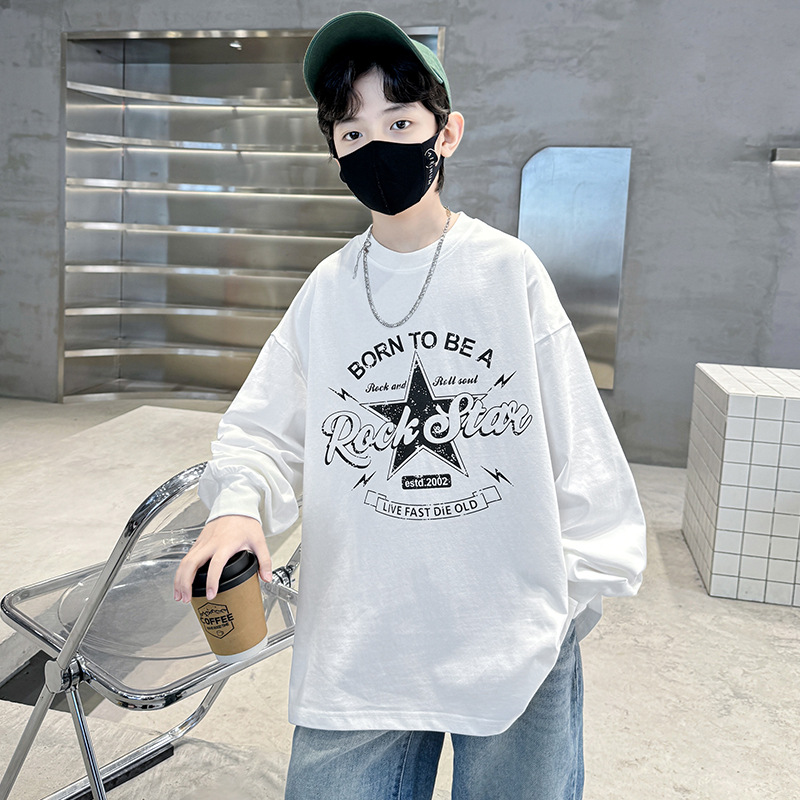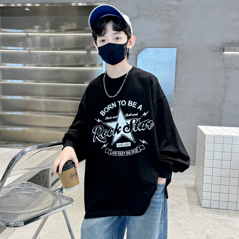 아동복 소년 봄 순면 티셔츠 2025 새로운 중대형 어린이 봄, 가을 소년 긴팔 봄 바닥 셔츠 t스토어 가기