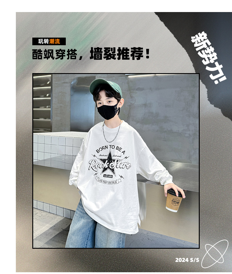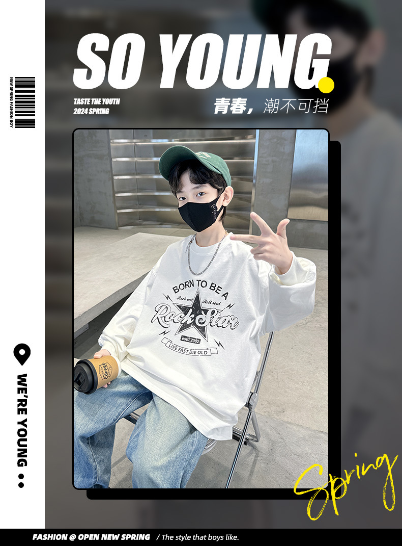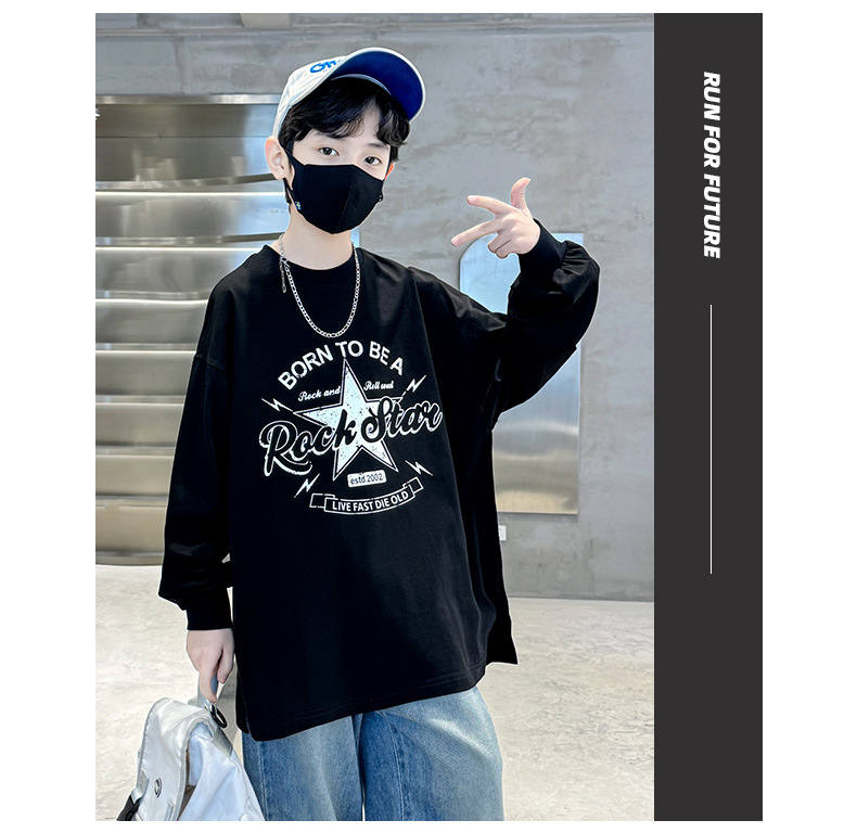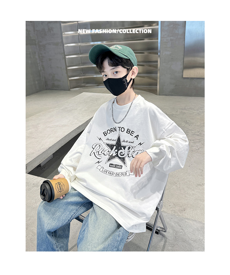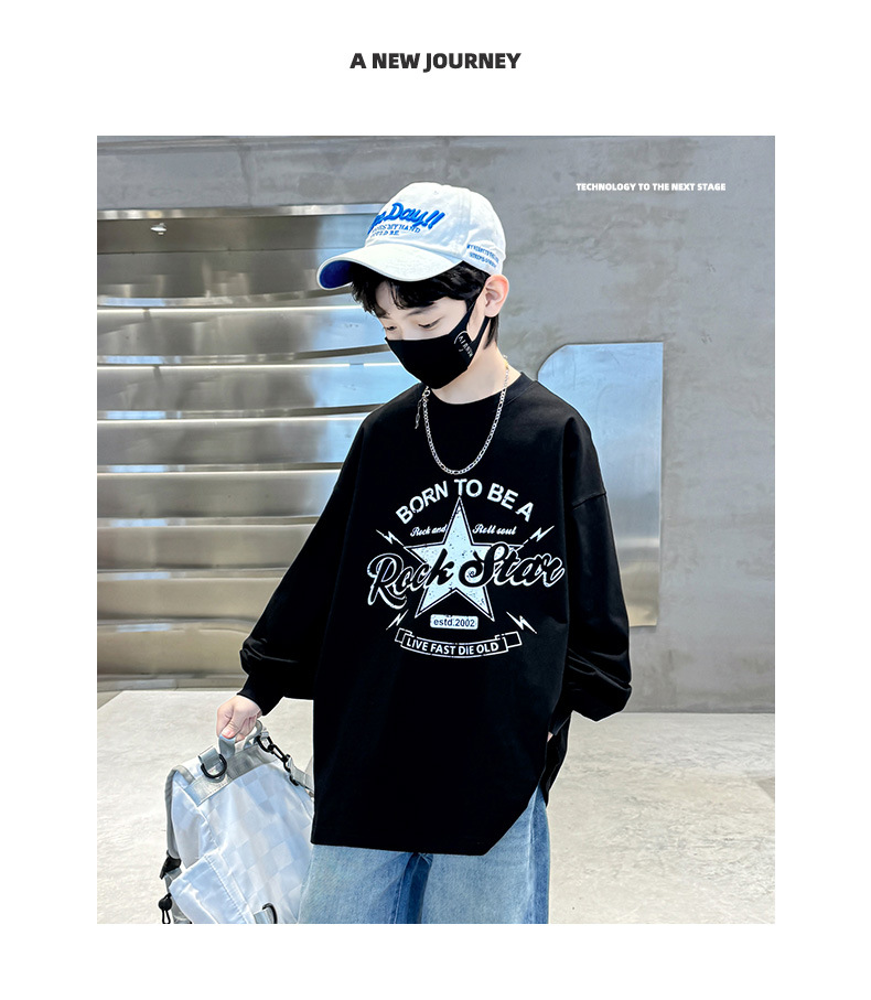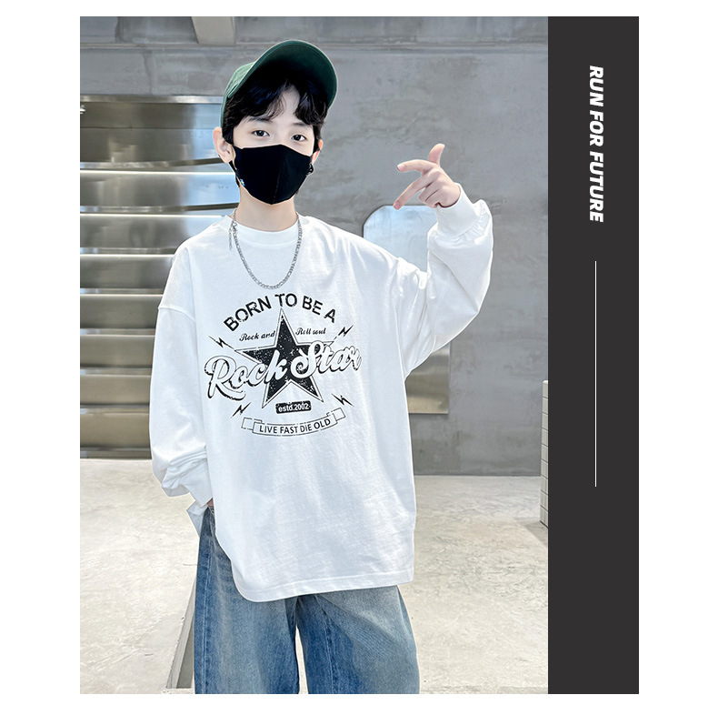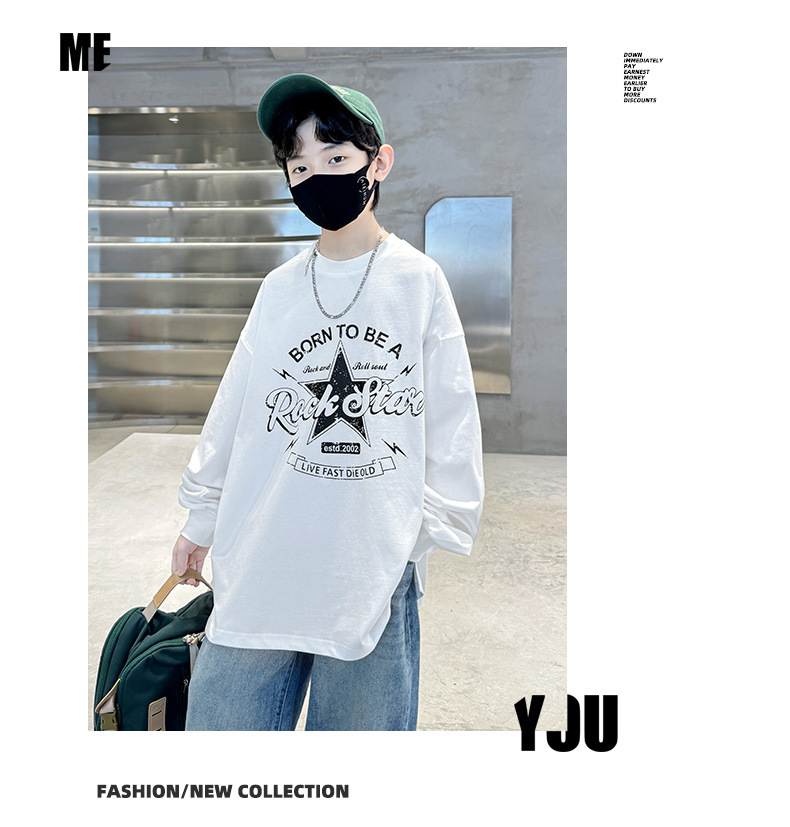 아동복 소년 봄 순면 티셔츠 2025 새로운 중대형 어린이 봄, 가을 소년 긴팔 봄 바닥 셔츠 t스토어 가기