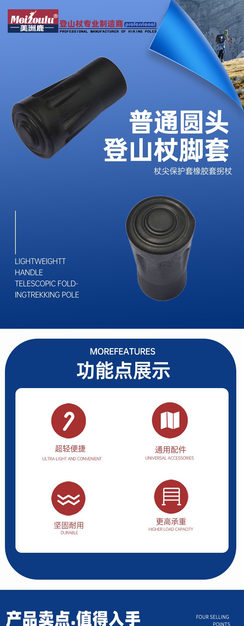 맞춤형 등산 지팡이 미끄럼 방지 고무 커버, 충격 흡수 및 내마모성 등산 지팡이 팁 커버, 보호 발 커버, 하이킹 야외 용품