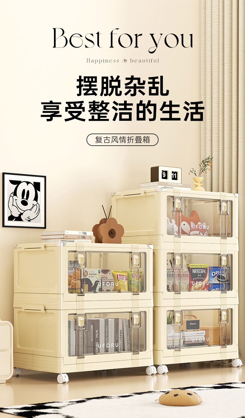 가정용 두꺼운 접이식 스낵 도구 침실 장난감 옷 책 정리 및 보관 캐비닛 뚜껑이 있는 플라스틱 보관 상자스토어 가기