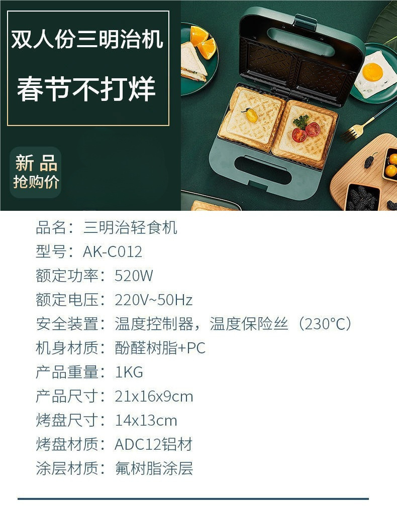 독일 샌드위치 기계 가정용 인터넷 연예인 가벼운 아침 식사 기계 샌드위치 전기 베이킹 팬 토스트 기계 빵 프레스 기계