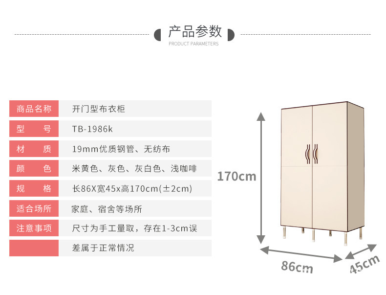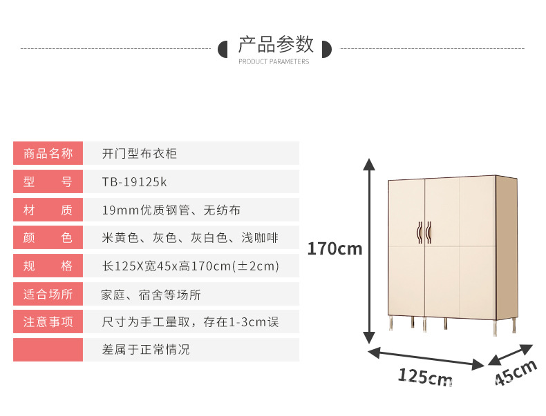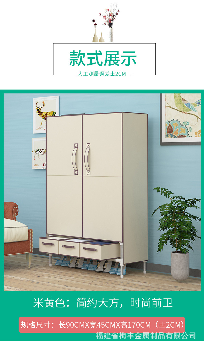 두꺼운 19mm 강철 파이프가 있는 맞춤형 양문형 접이식 간이 천 옷장, 싱글 수납 옷장