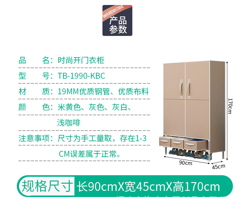 두꺼운 19mm 강철 파이프가 있는 맞춤형 양문형 접이식 간이 천 옷장, 싱글 수납 옷장스토어 가기