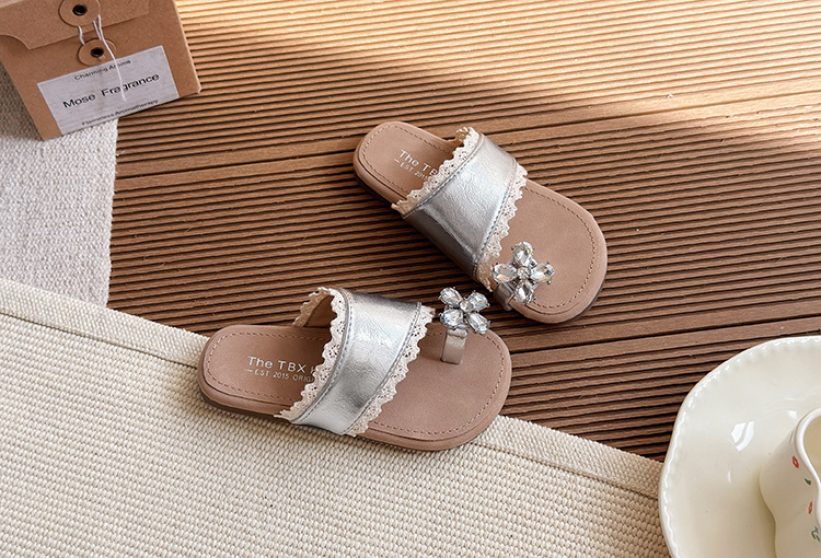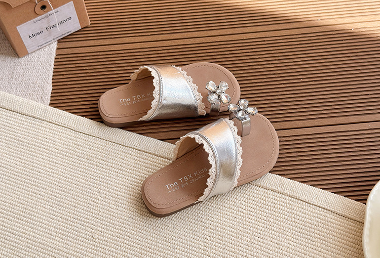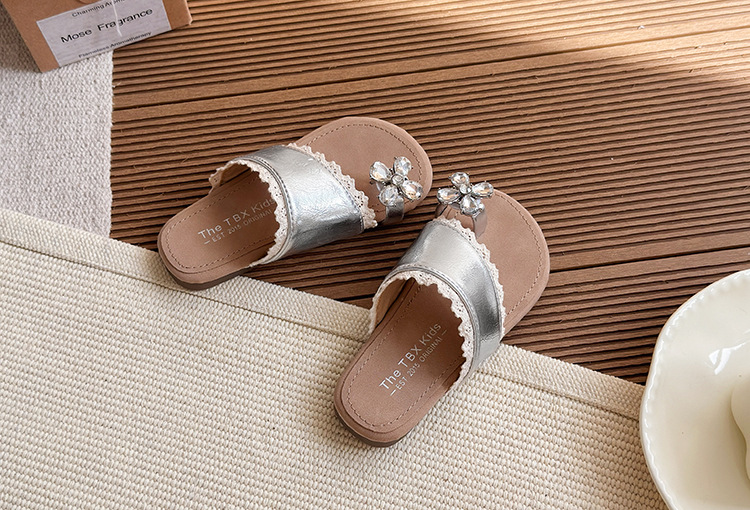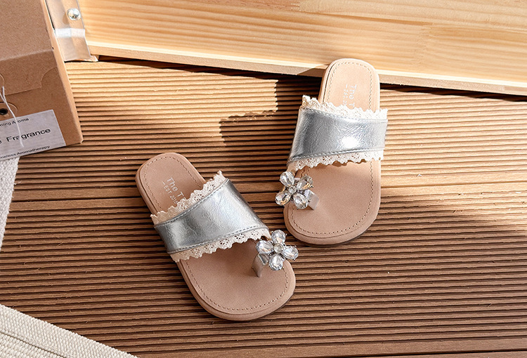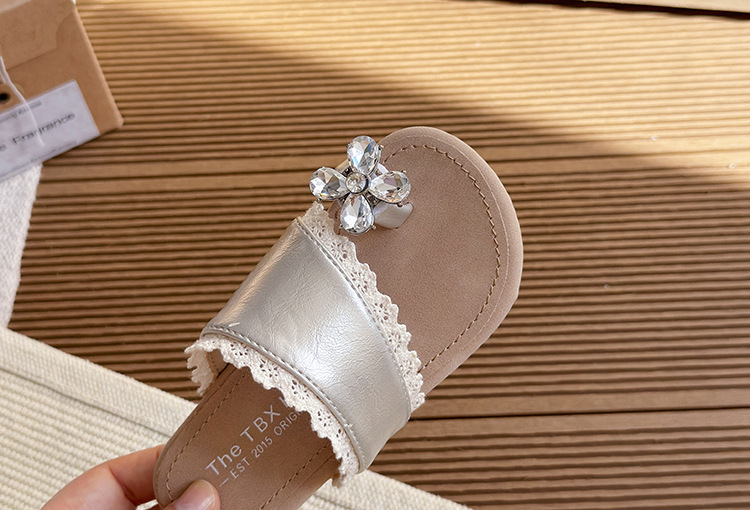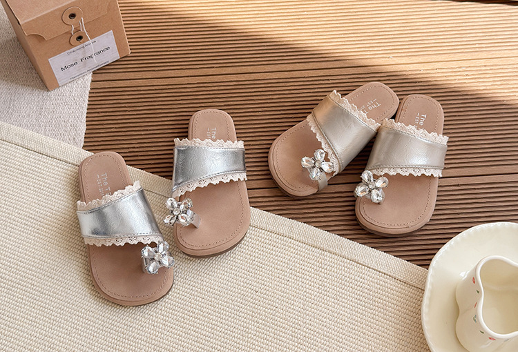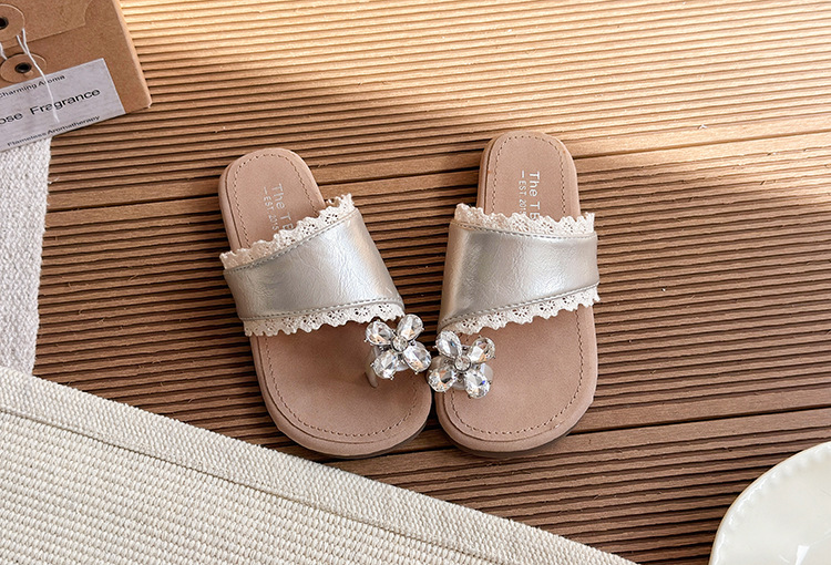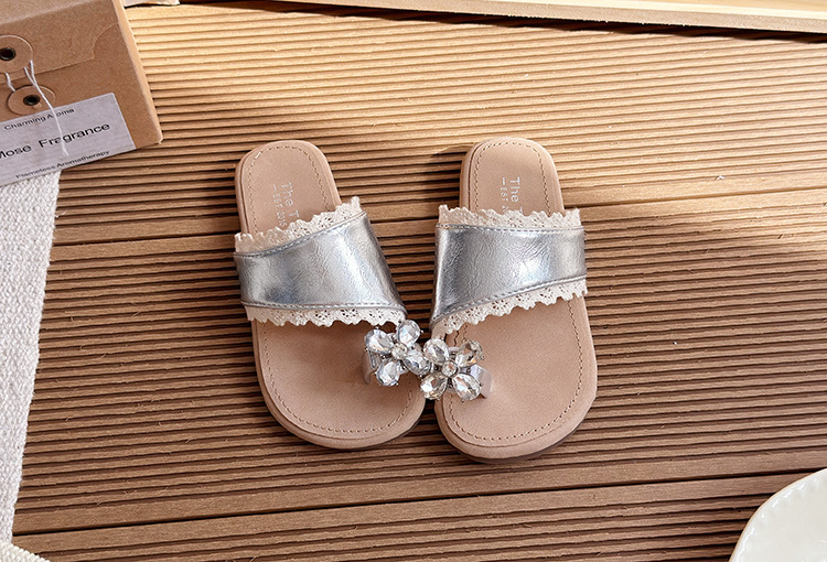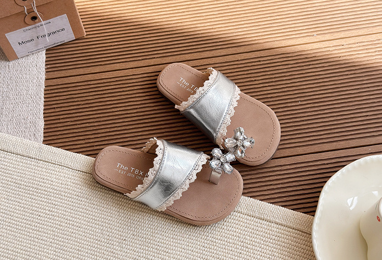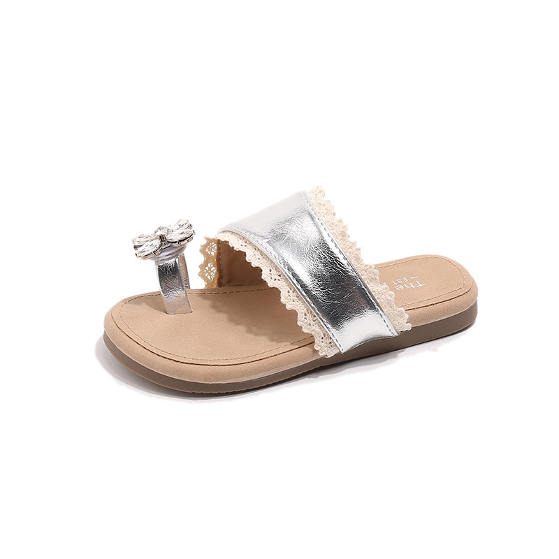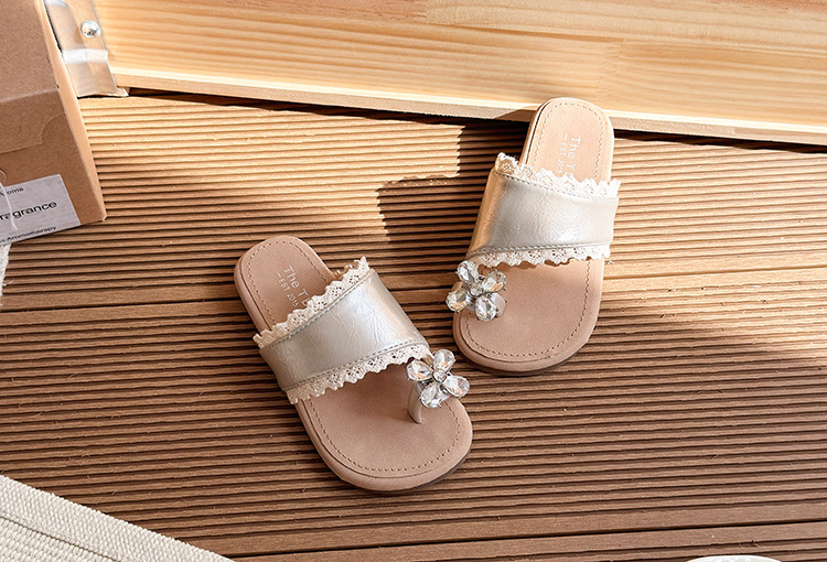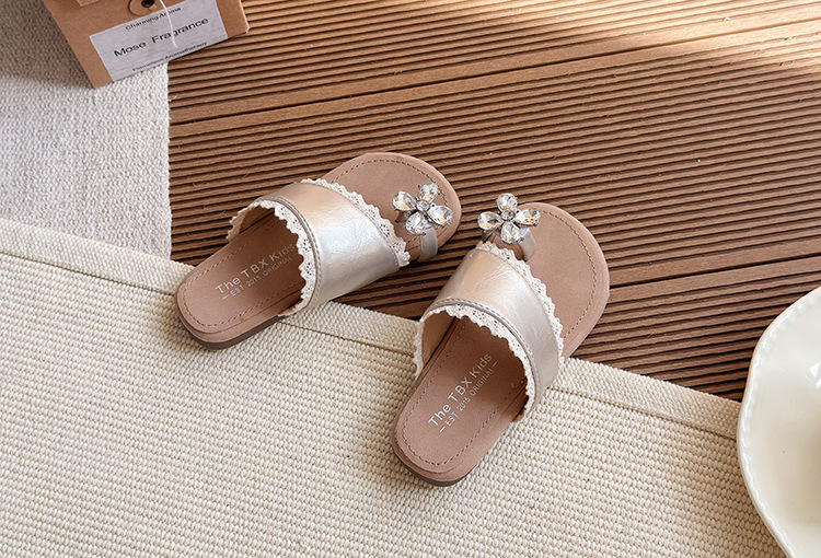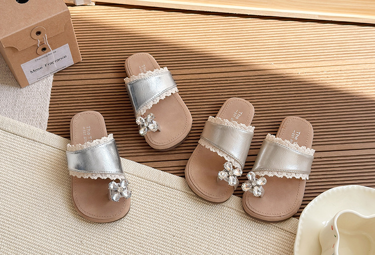 ins 프랑스 스타일 라인스톤 슬리퍼 2026 여름 신상 한국판 여아 레이스 트리밍 토오픈 프린세스 슈즈 비치 샌들