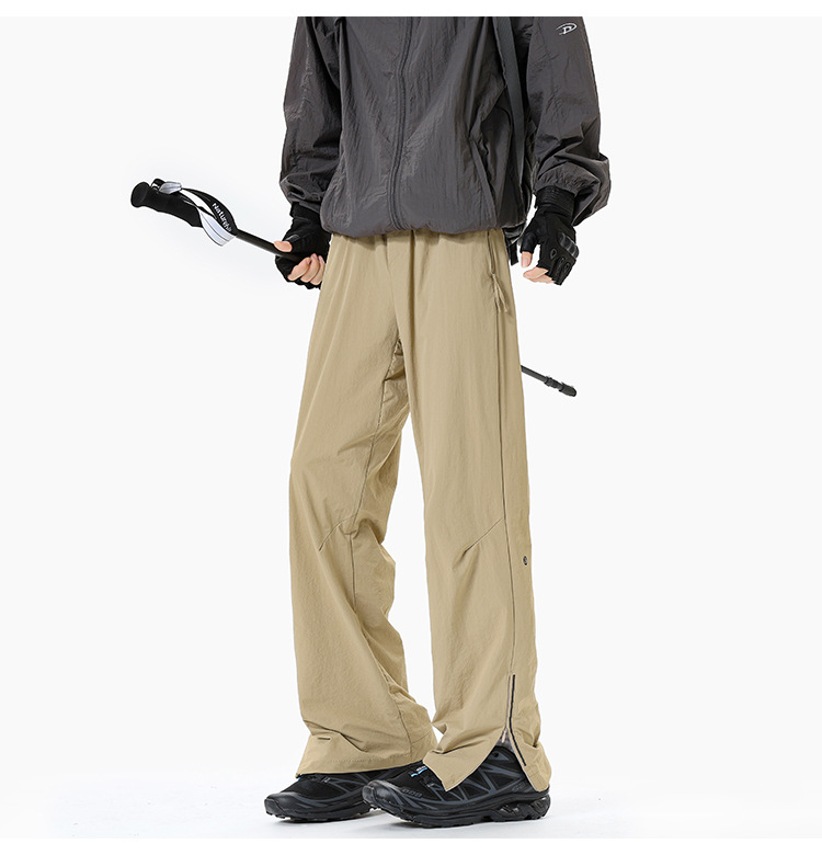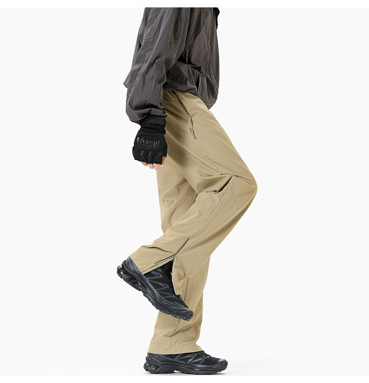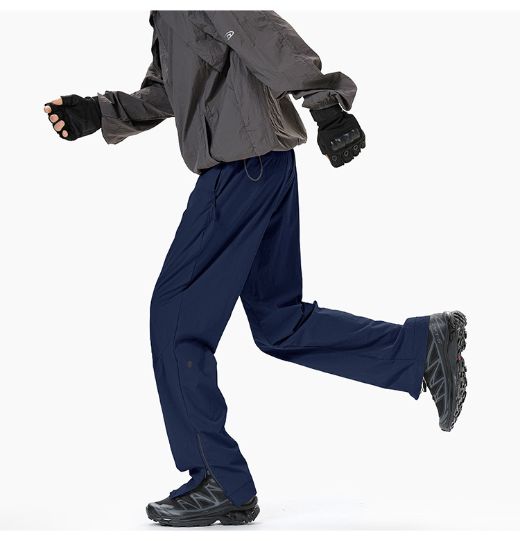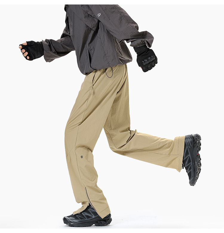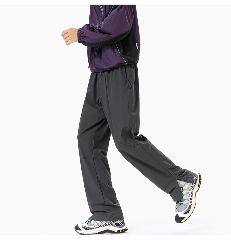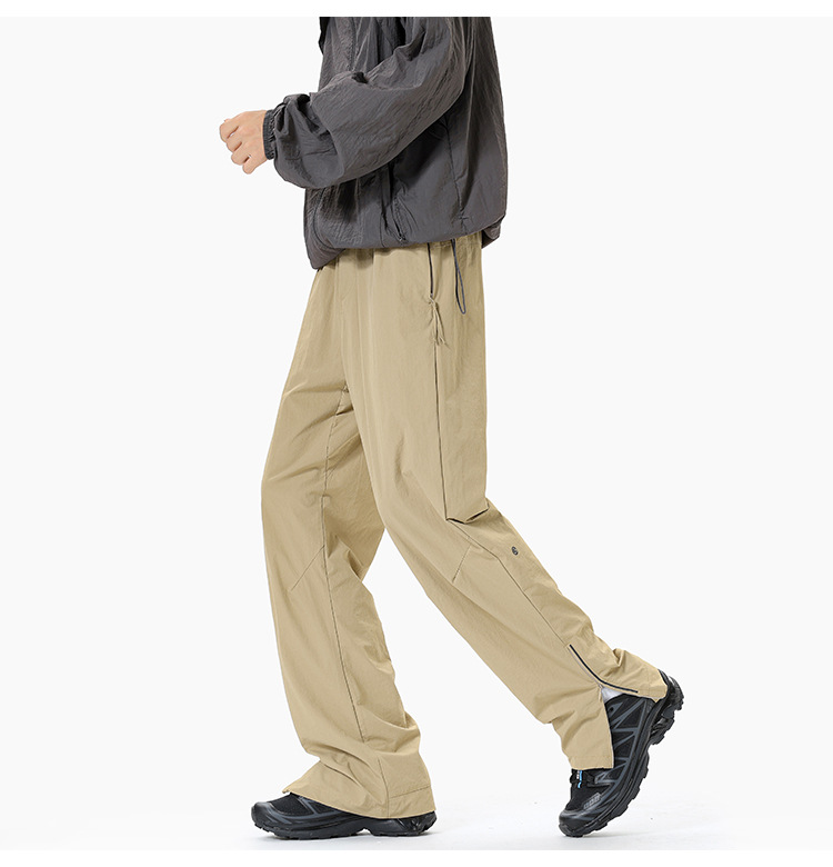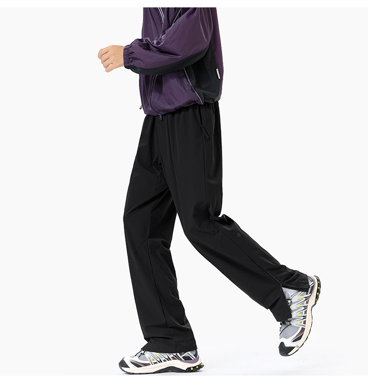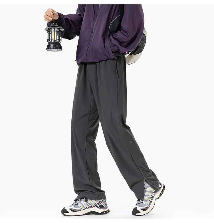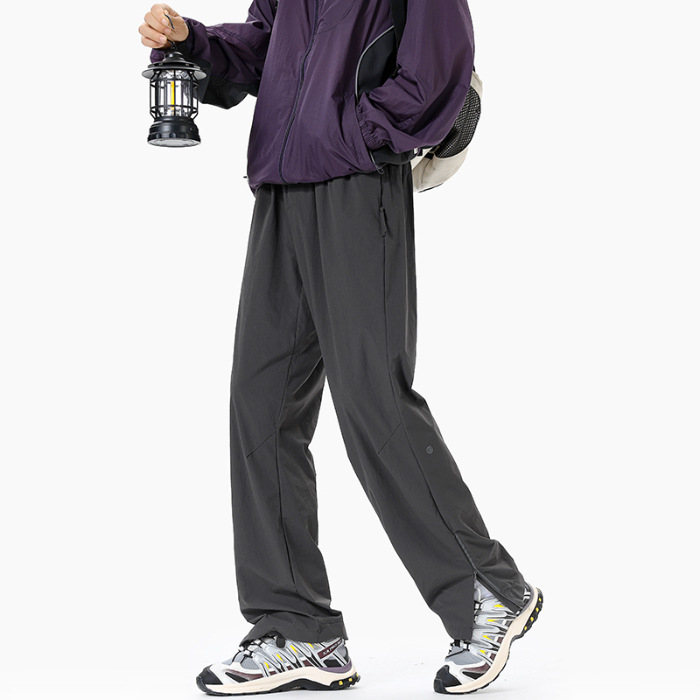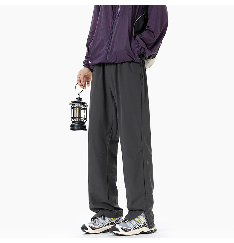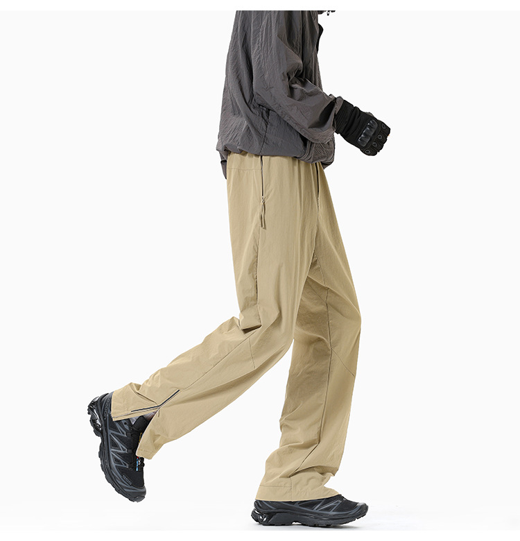 사이드 지퍼 아이스 실크 속건성 바지 남성 여름 얇은 스트레치 스트레이트 작업 바지 야외 등산 바지