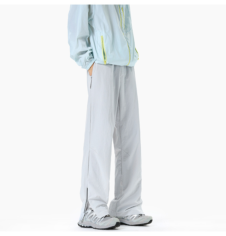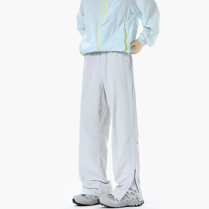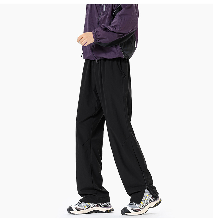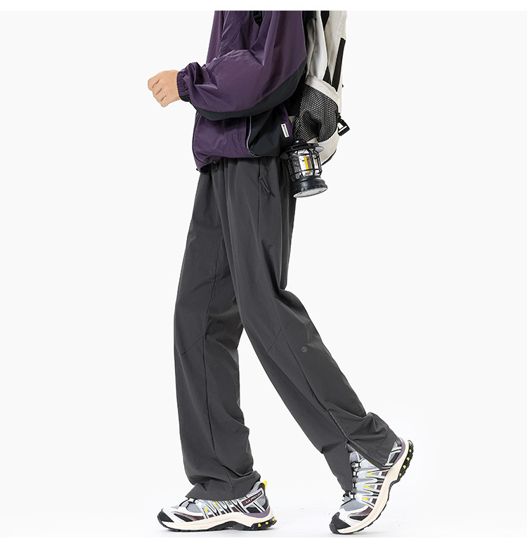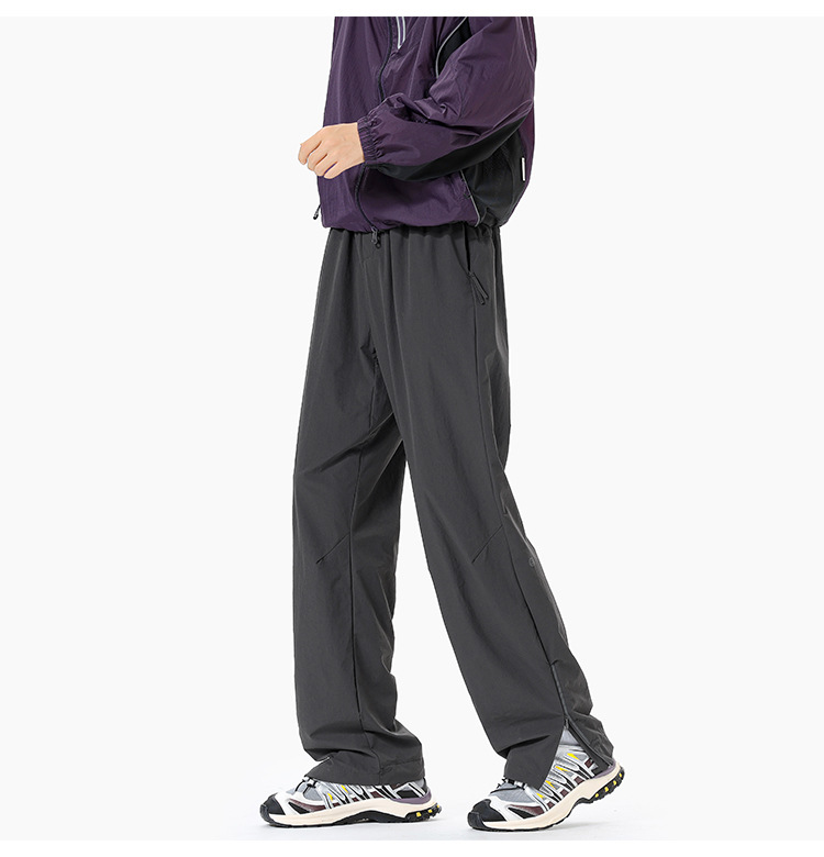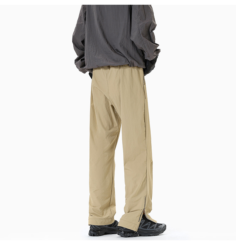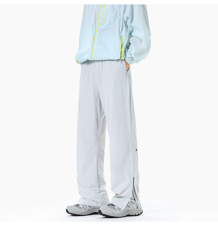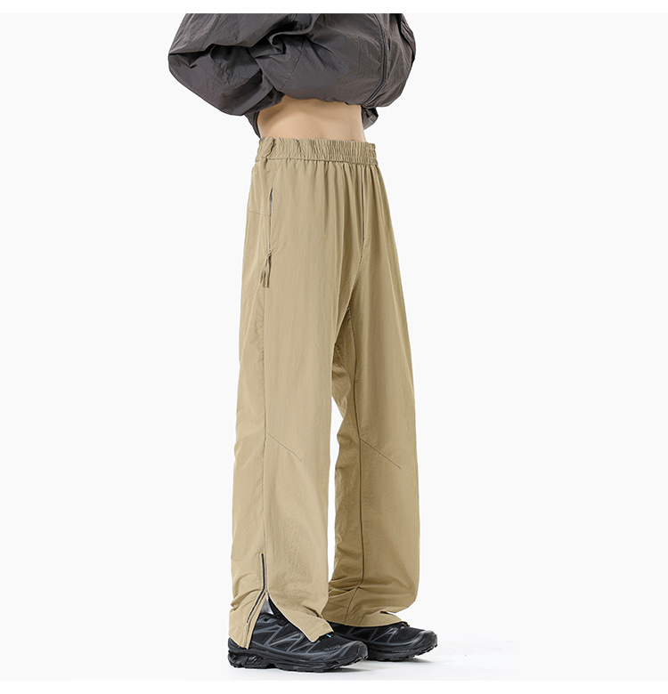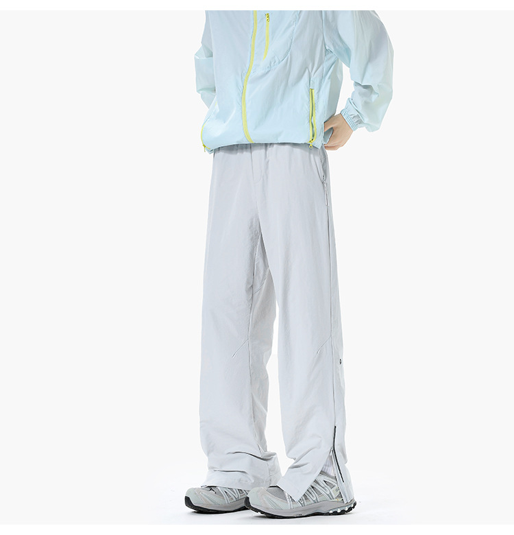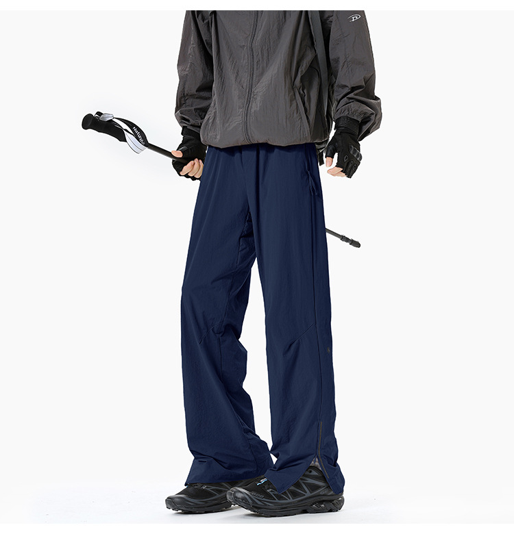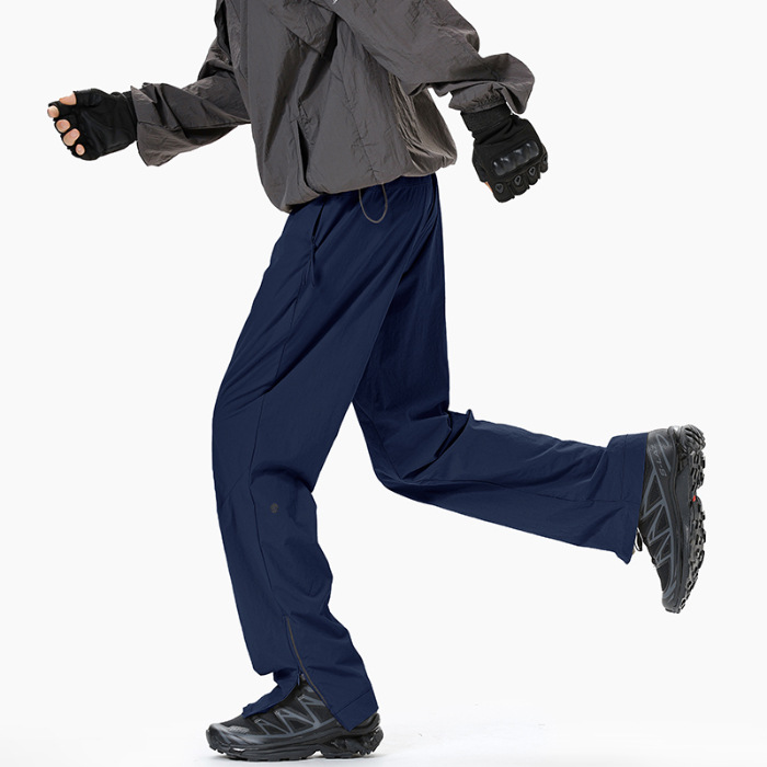 사이드 지퍼 아이스 실크 속건성 바지 남성 여름 얇은 스트레치 스트레이트 작업 바지 야외 등산 바지