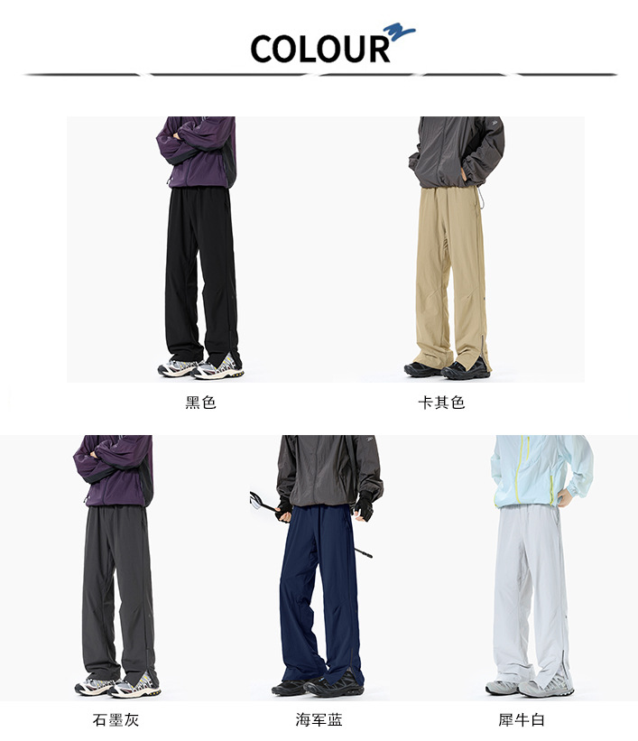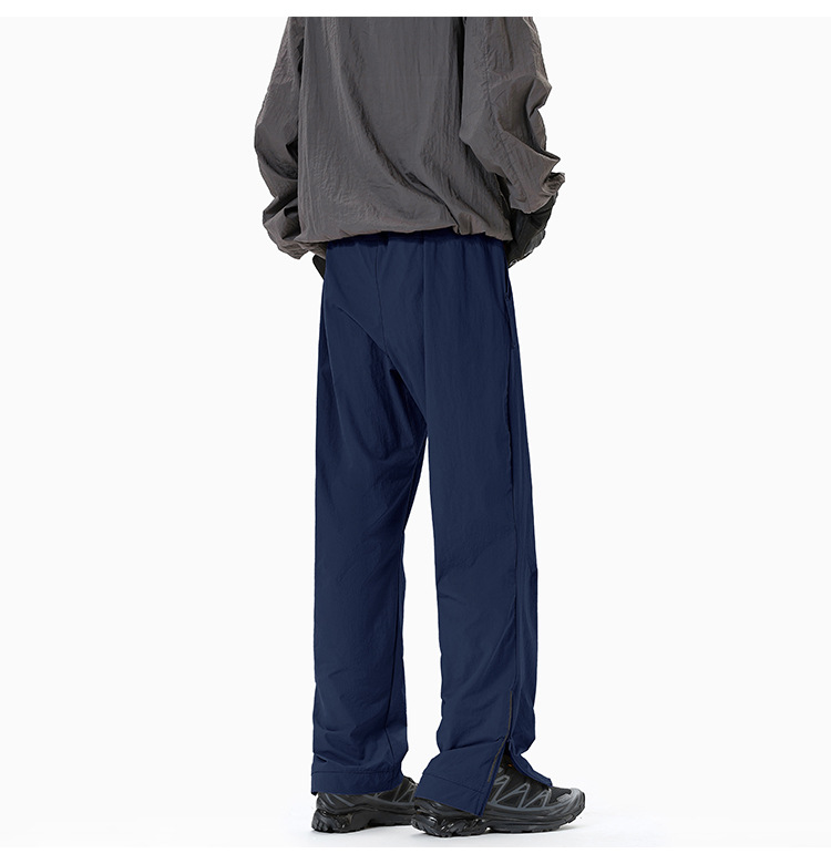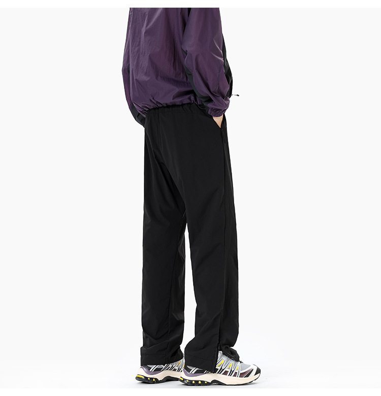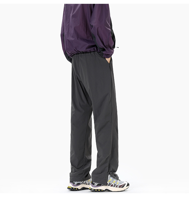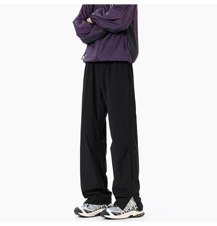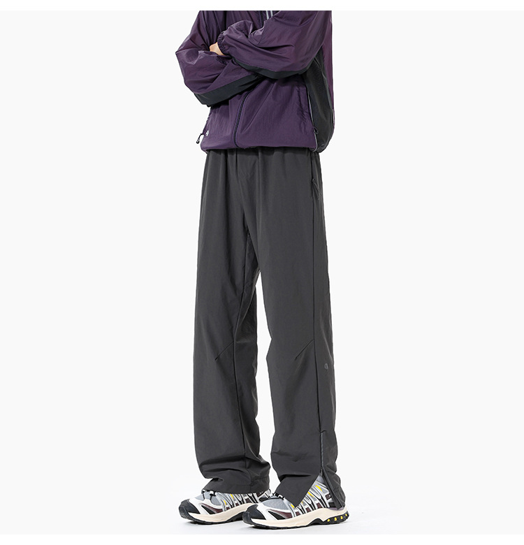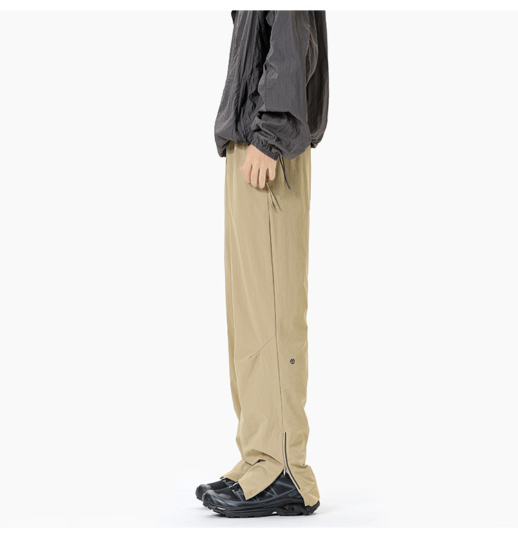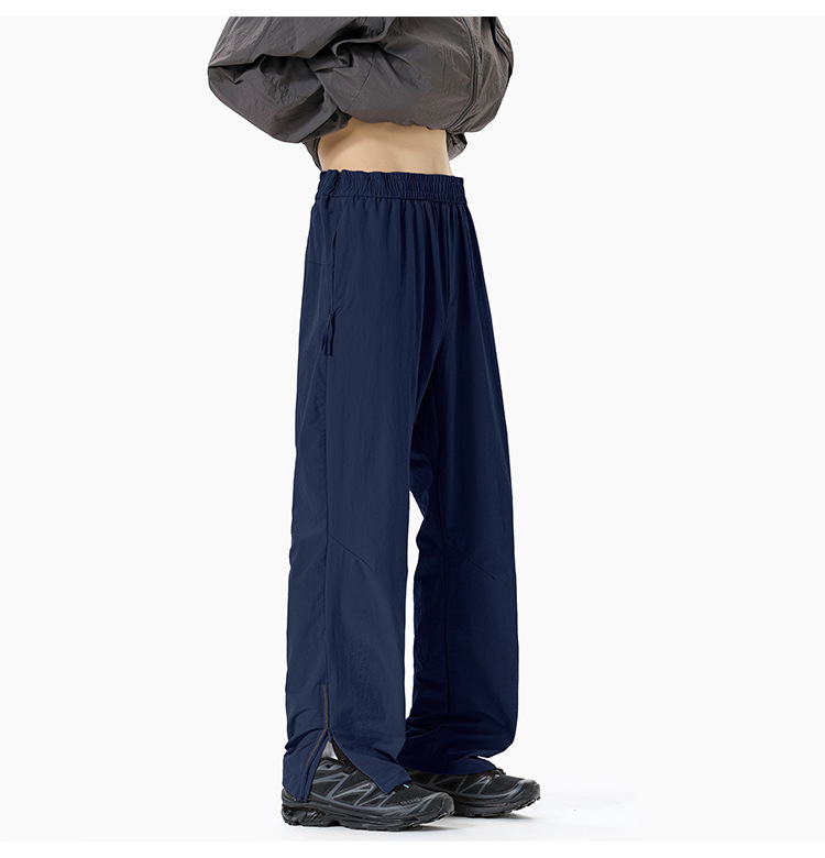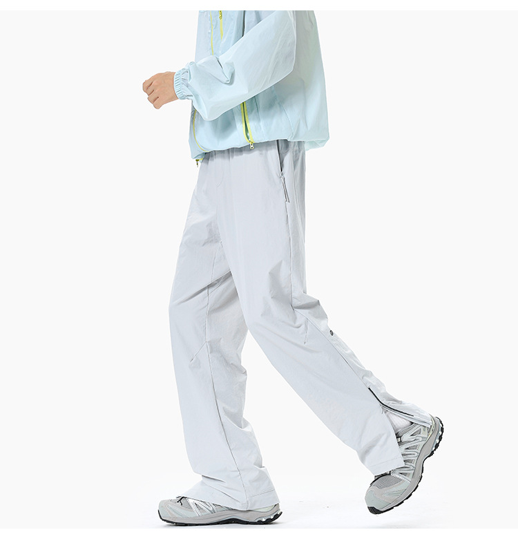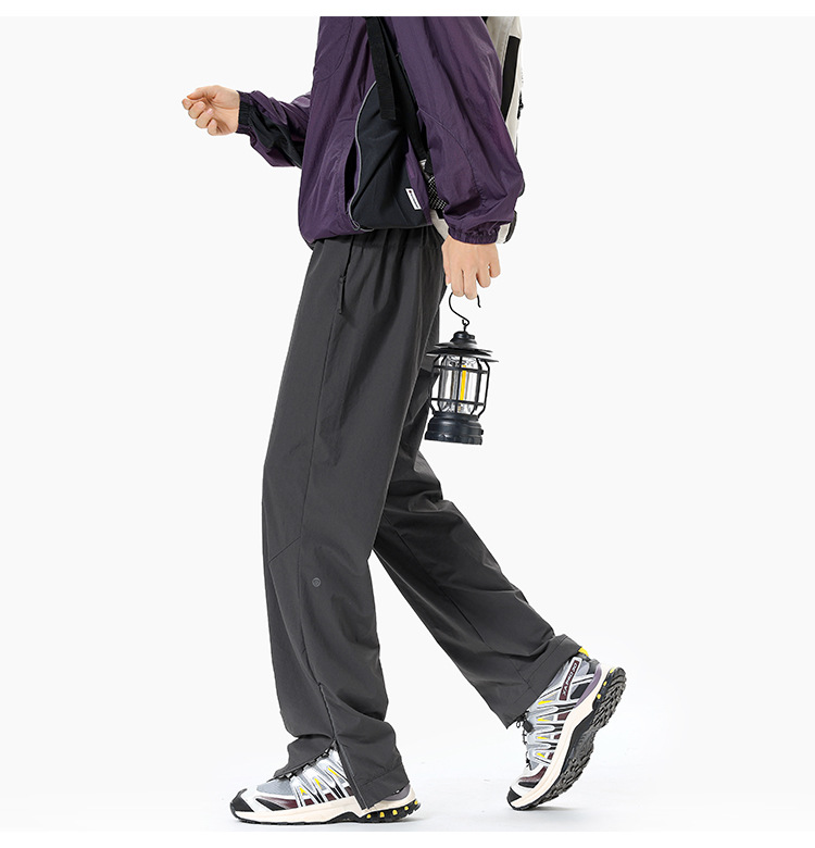 사이드 지퍼 아이스 실크 속건성 바지 남성 여름 얇은 스트레치 스트레이트 작업 바지 야외 등산 바지