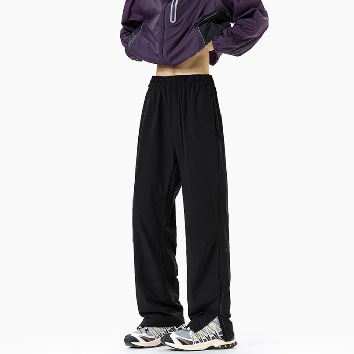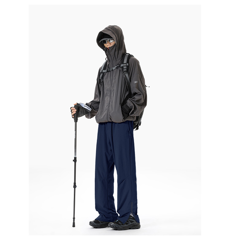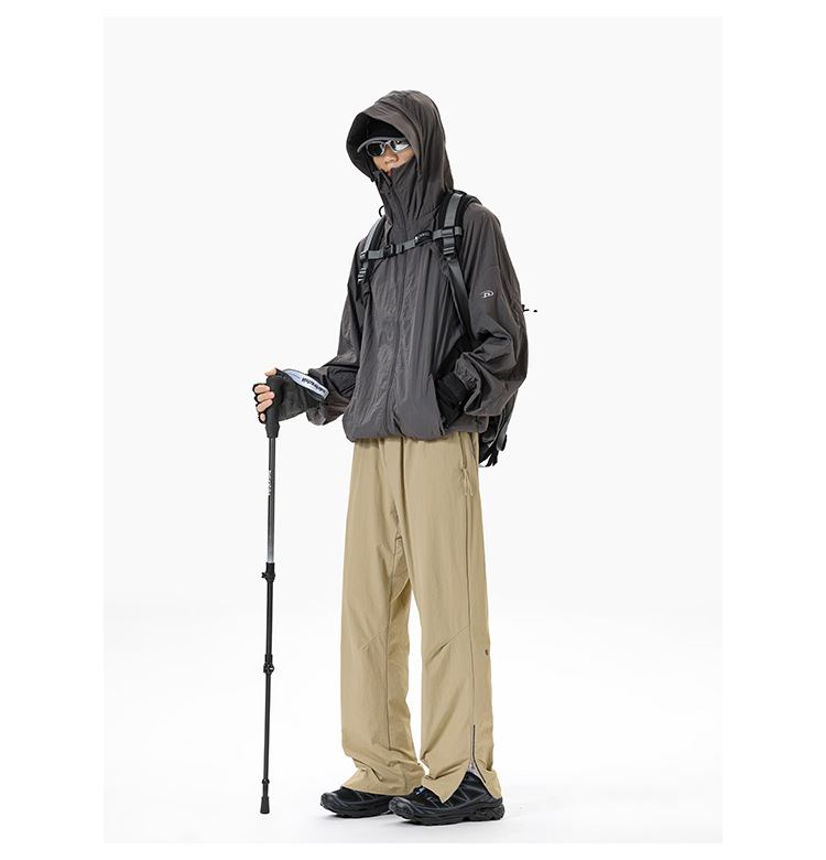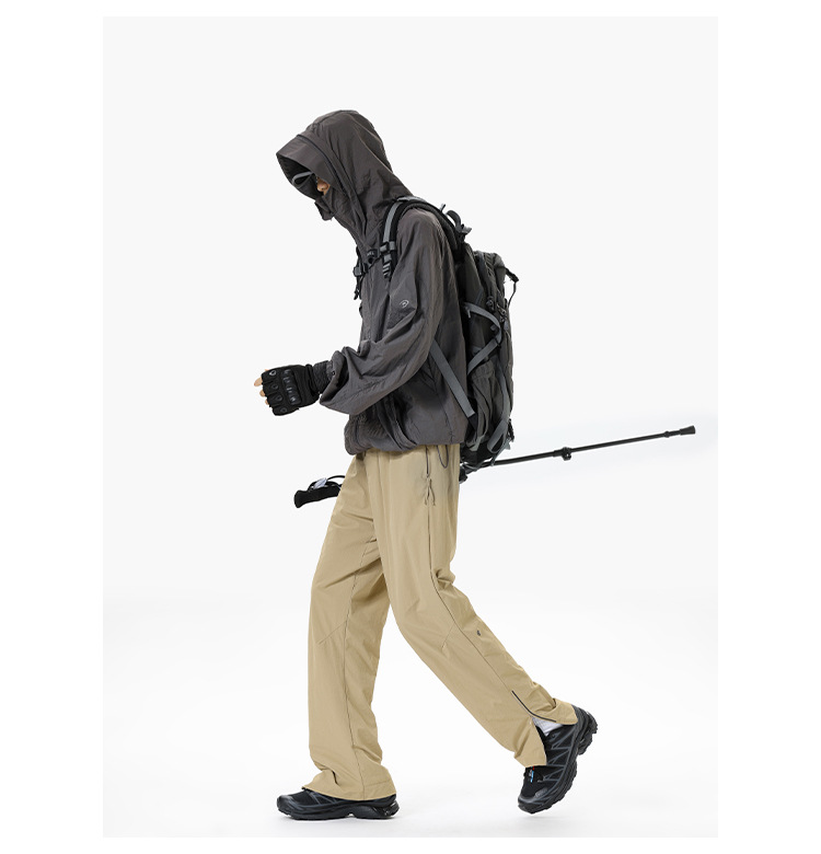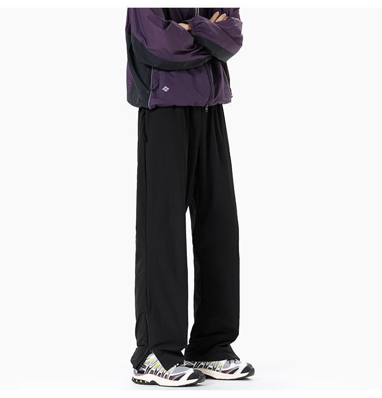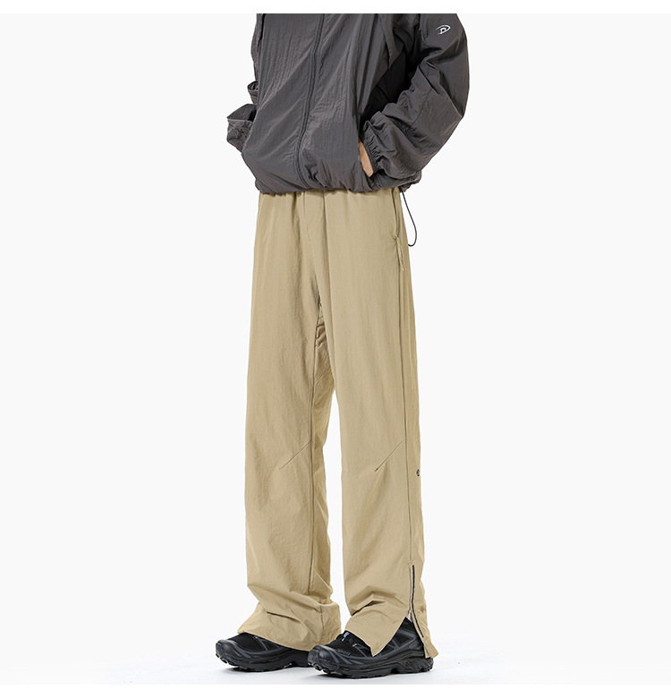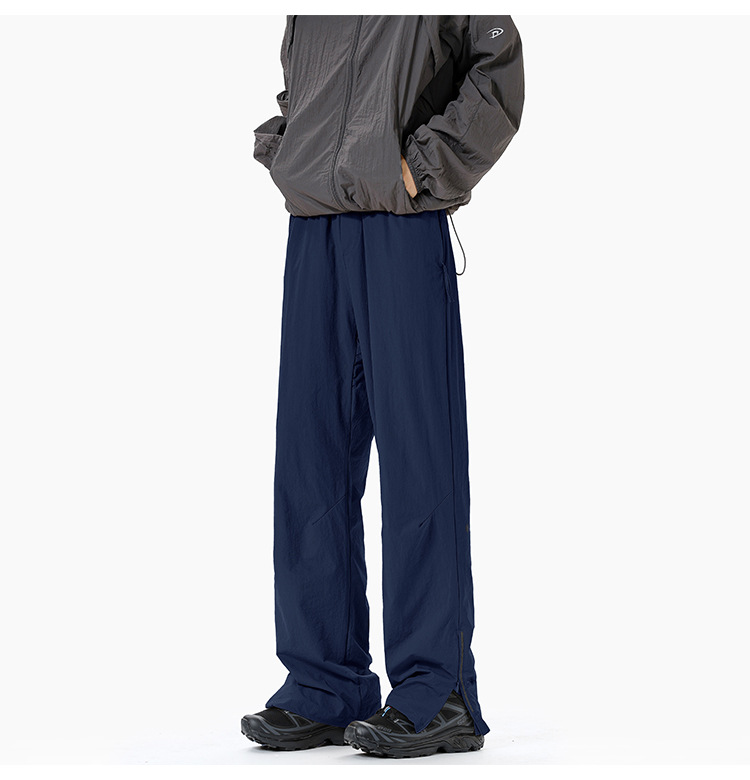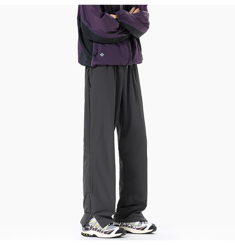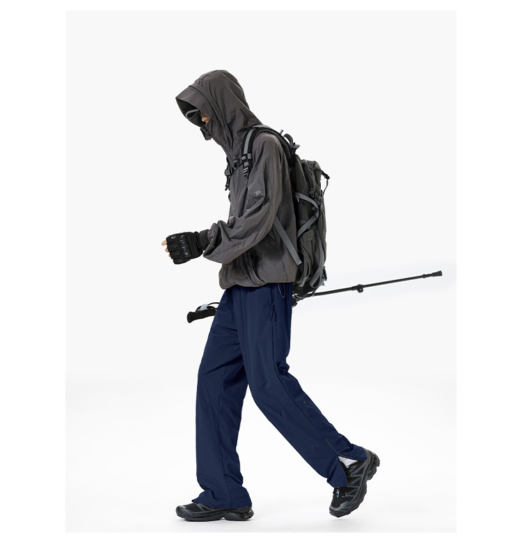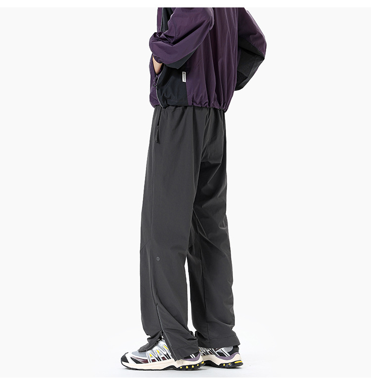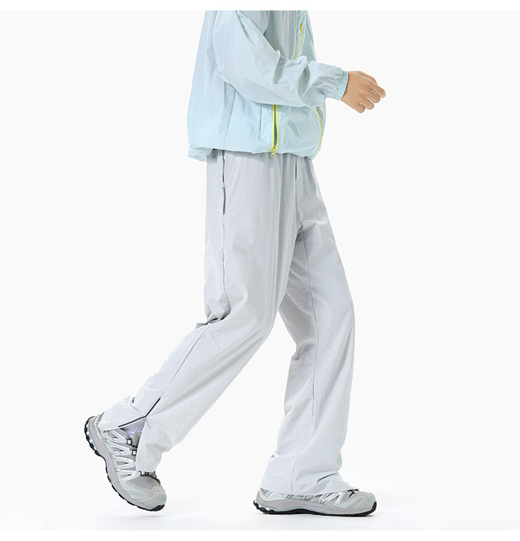 사이드 지퍼 아이스 실크 속건성 바지 남성 여름 얇은 스트레치 스트레이트 작업 바지 야외 등산 바지