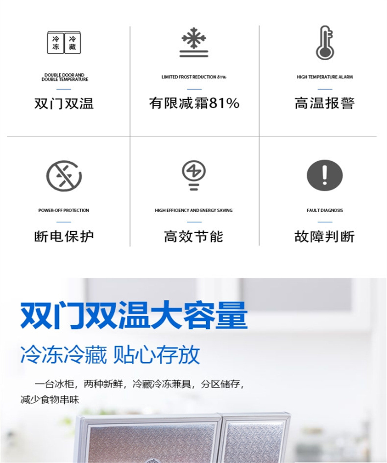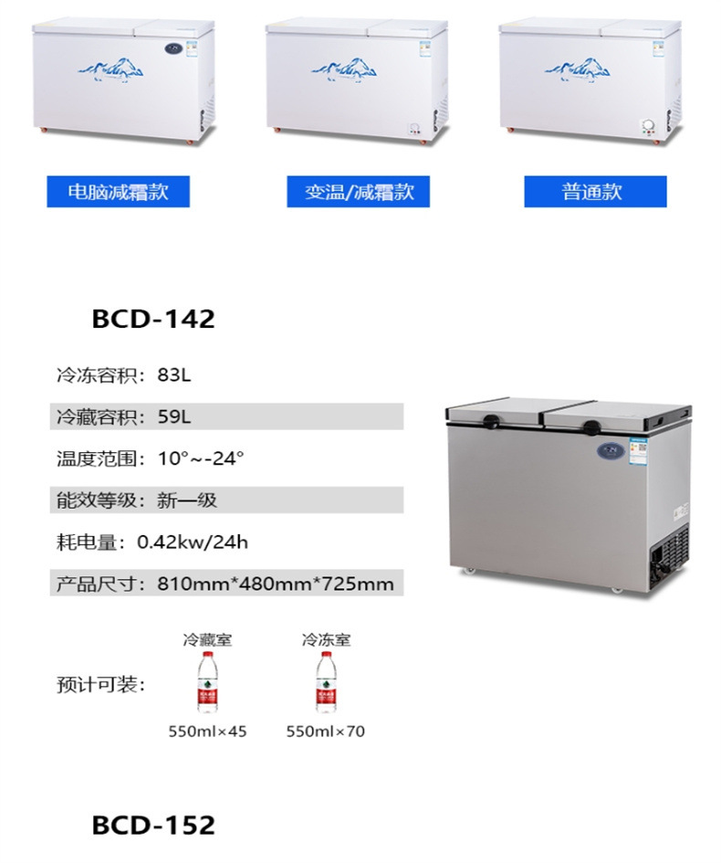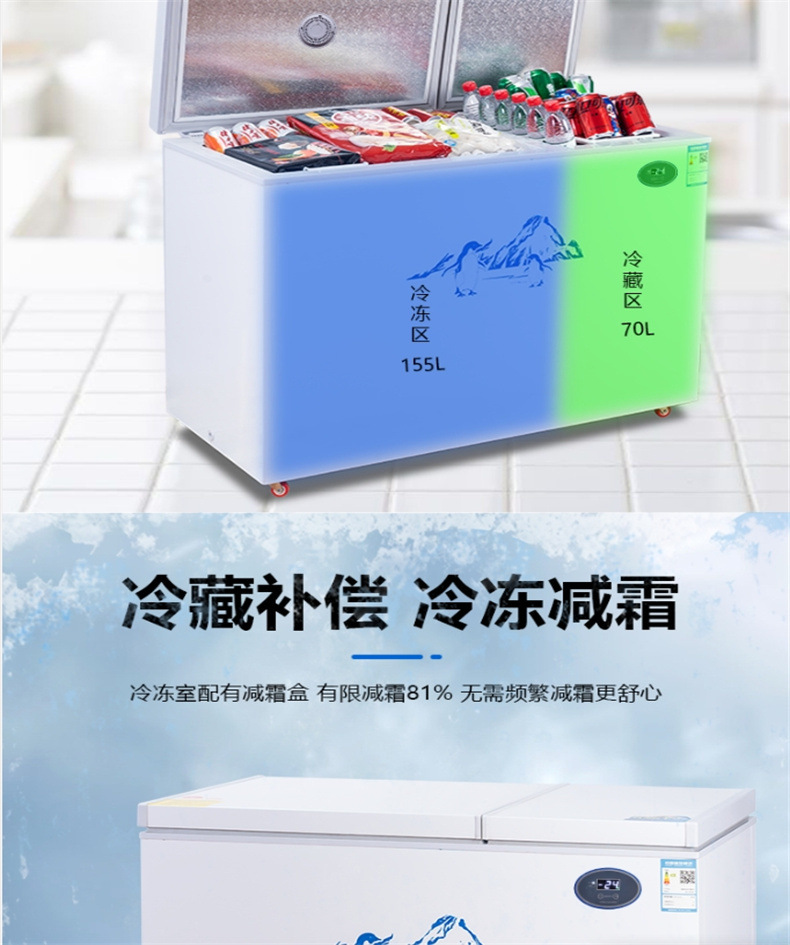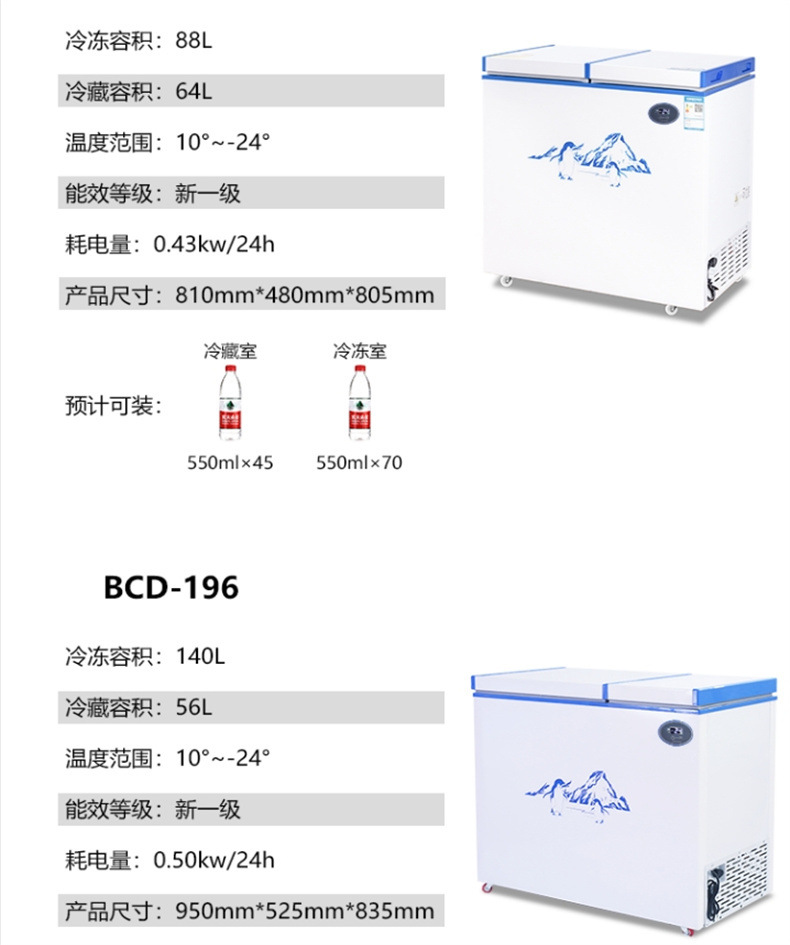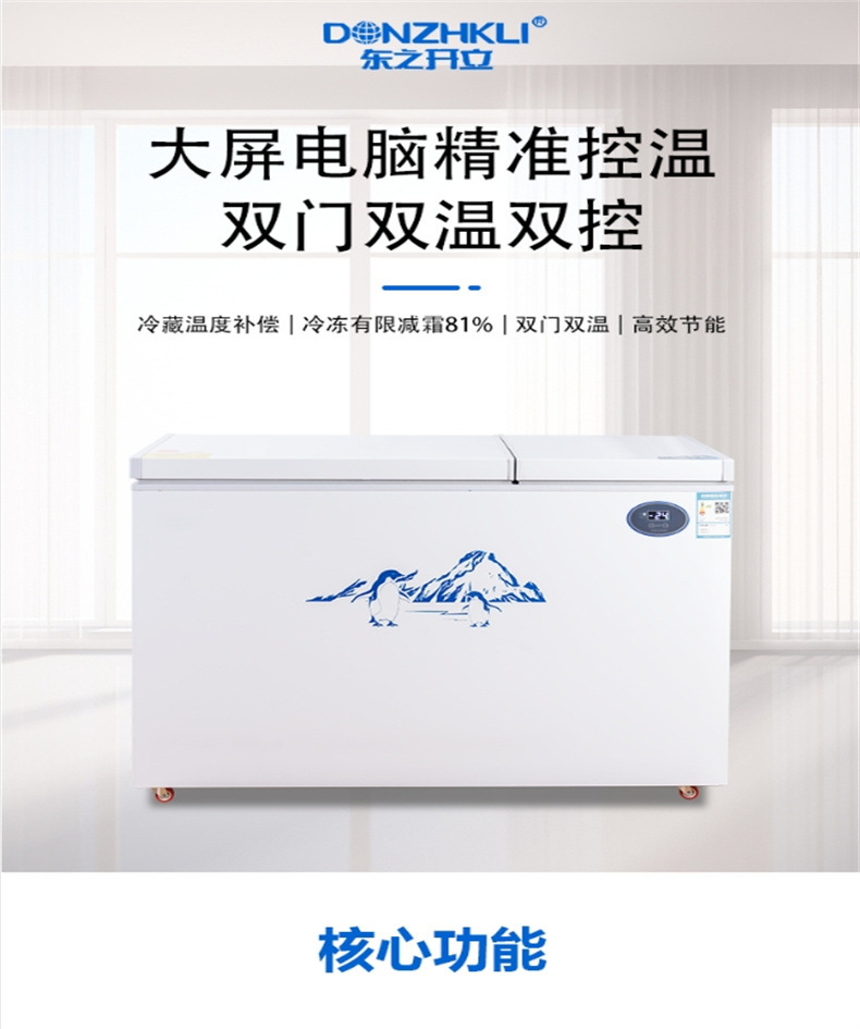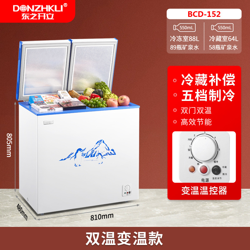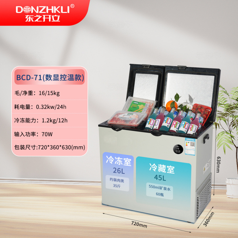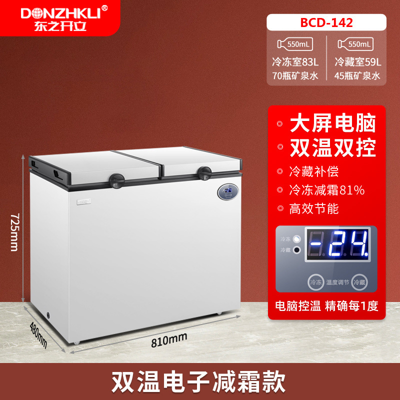 Dongzhikai 이중 도어 냉동고 냉장 및 냉동 이중 목적 지능형 온도 조절 전자 자동차 수평 자동차 냉장고스토어 가기