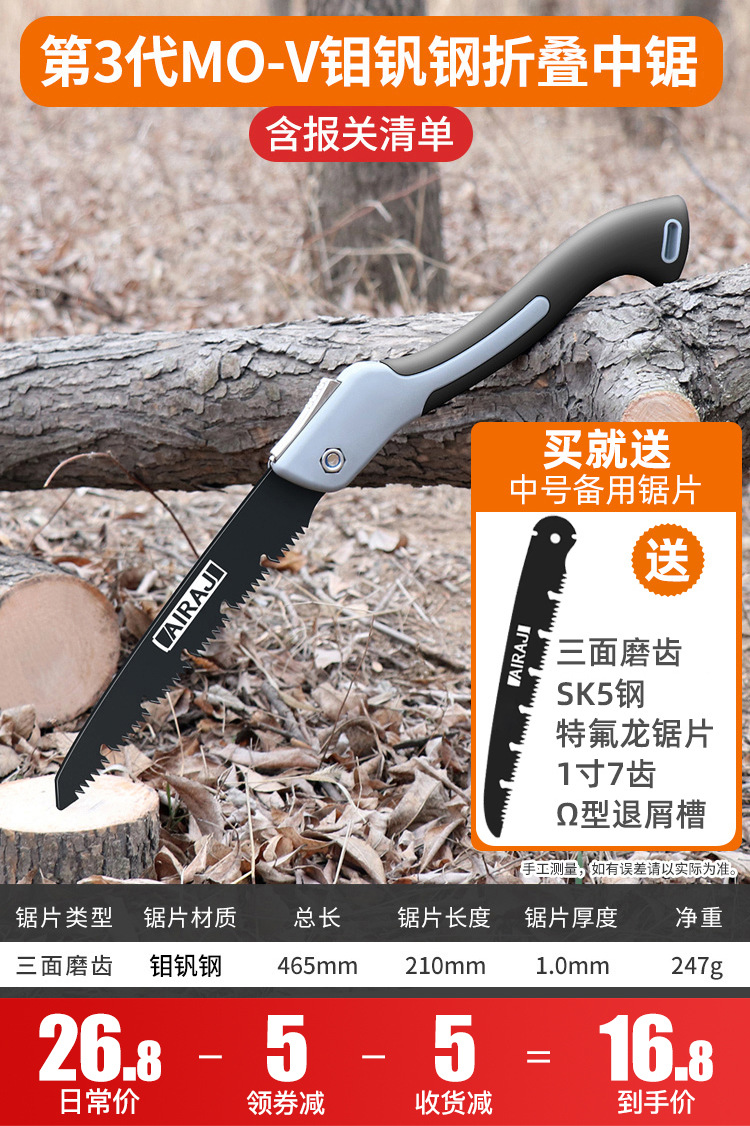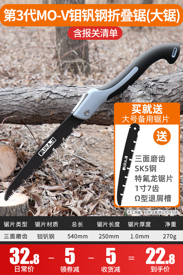 • [미세연삭 9배속] 3세대 몰리브덴바나듐강 접이식톱(대형)