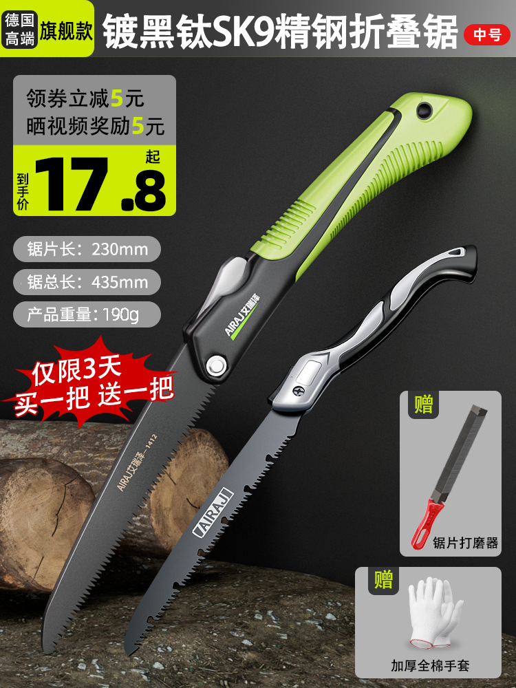 • [독일 고급 플래그십 모델] 블랙 티타늄 도금 SK9 스테인리스 접이식 톱(가운데)