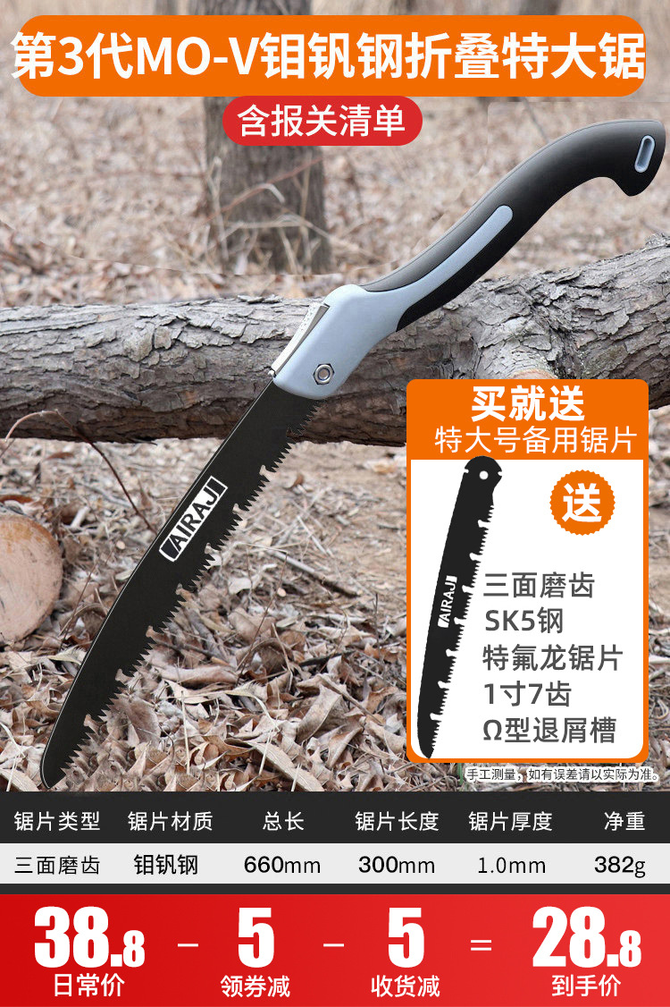 • [미세연삭 9배속] 3세대 몰리브덴바나듐강 접이식톱(특대형)