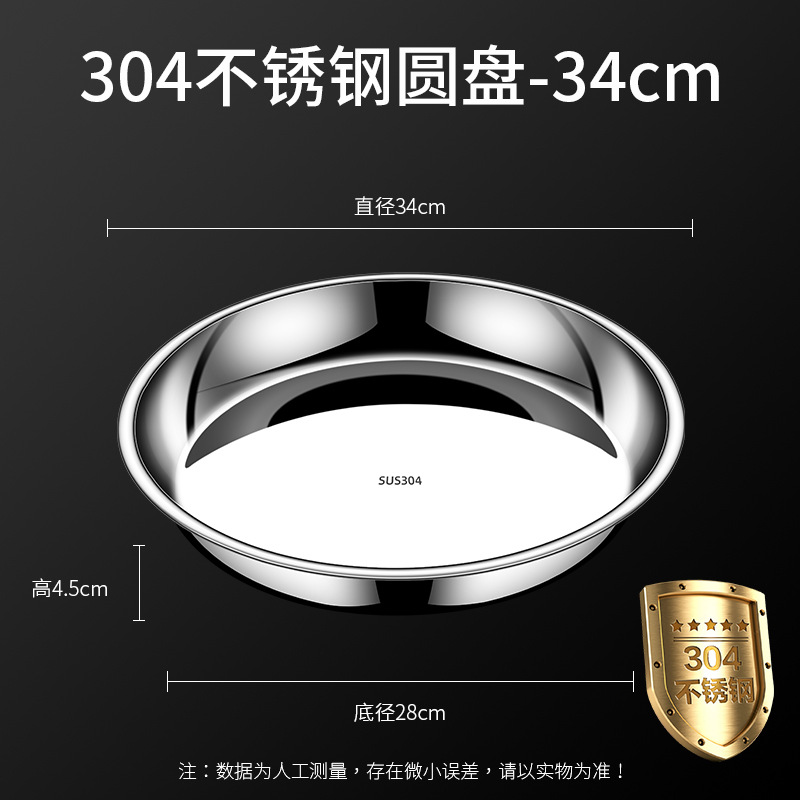 • 【34CM】304 스테인리스 스틸 원형 접시 - 두께 강화형 ♢ ♢ ♢