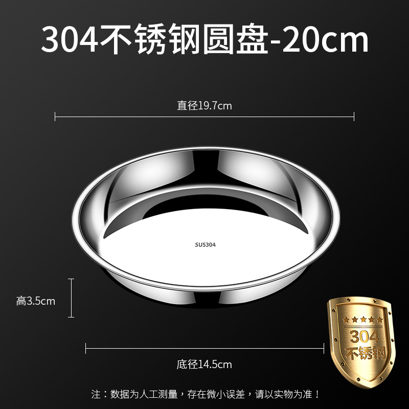 • 【20CM】304 스테인리스 스틸 원형 접시 - 두께 강화형 ♢ ♢ ♢