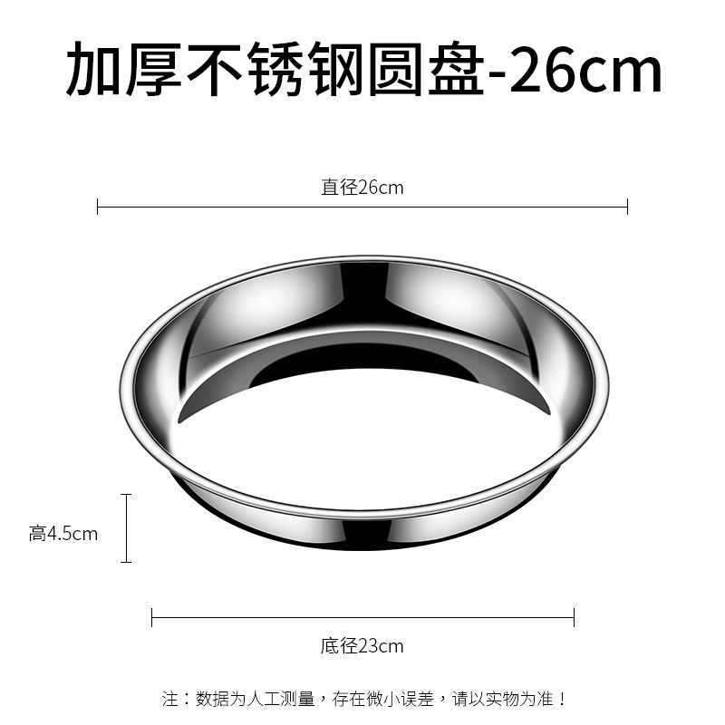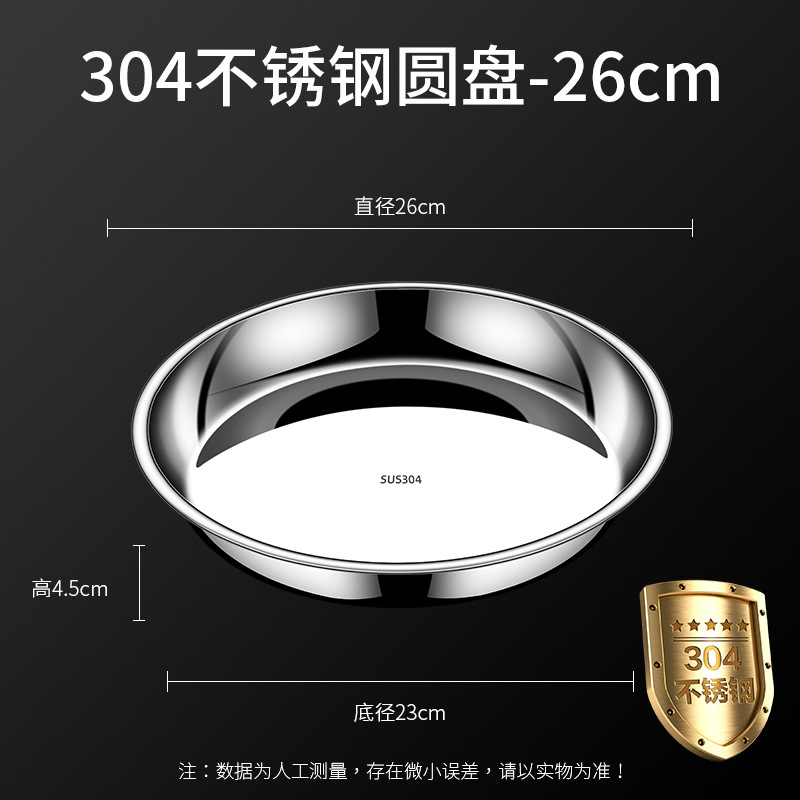 • 【26CM】304 스테인리스 스틸 원형 접시 - 두께 강화형 ♢ ♢ ♢