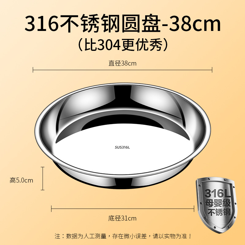 • 【38CM】316 스테인리스 스틸 원형 접시 - 두께 강화형 ♢ ♢ ♢