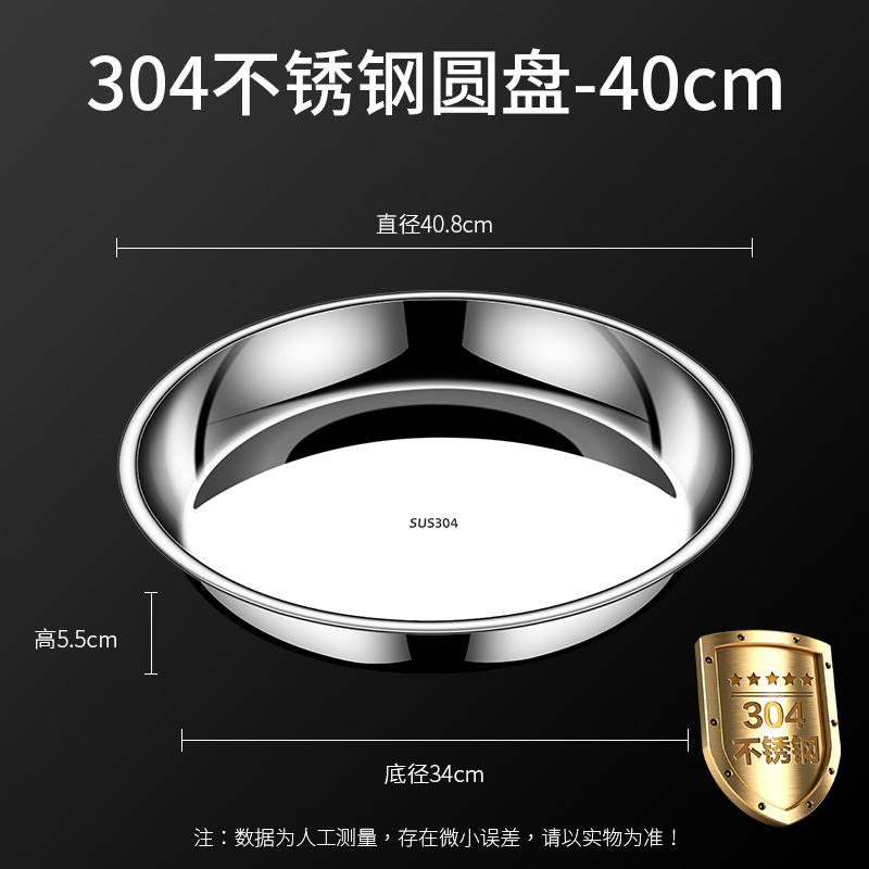 • 【40CM】304 스테인리스 스틸 원형 접시 - 두께 강화형 ♢ ♢ ♢