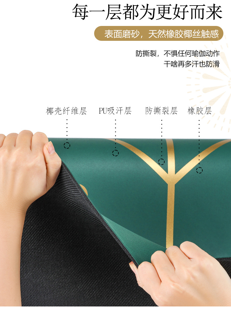 천연 고무 요가 매트, 코코넛 껍질, 미끄럼 방지, 내마모성, 샌딩 요가 매트, 땀 흡수 및 내마모성 스포츠 피트니스 매트, 맞춤 제작 가능