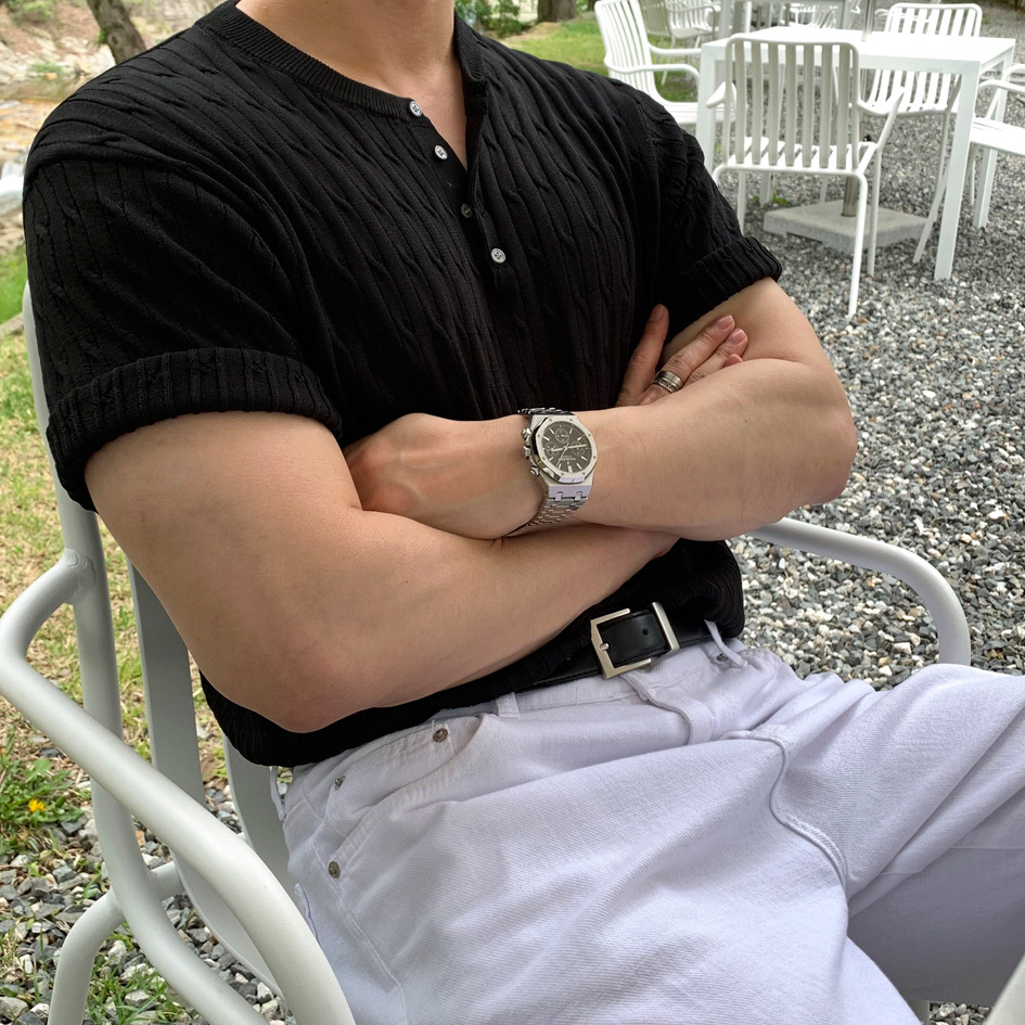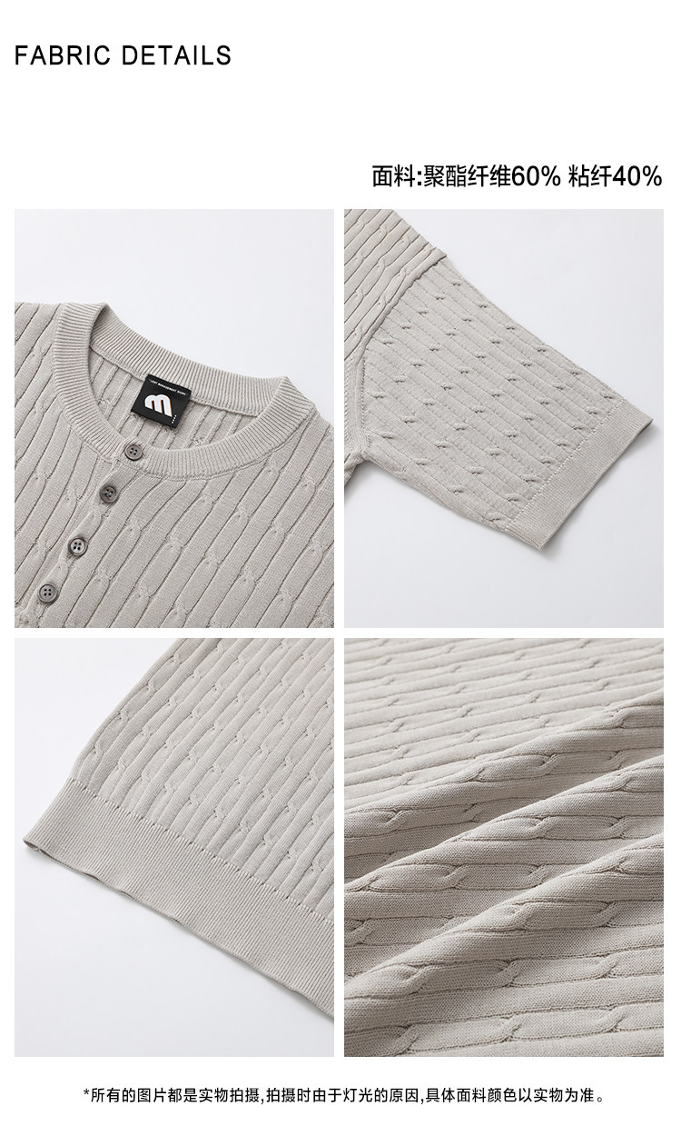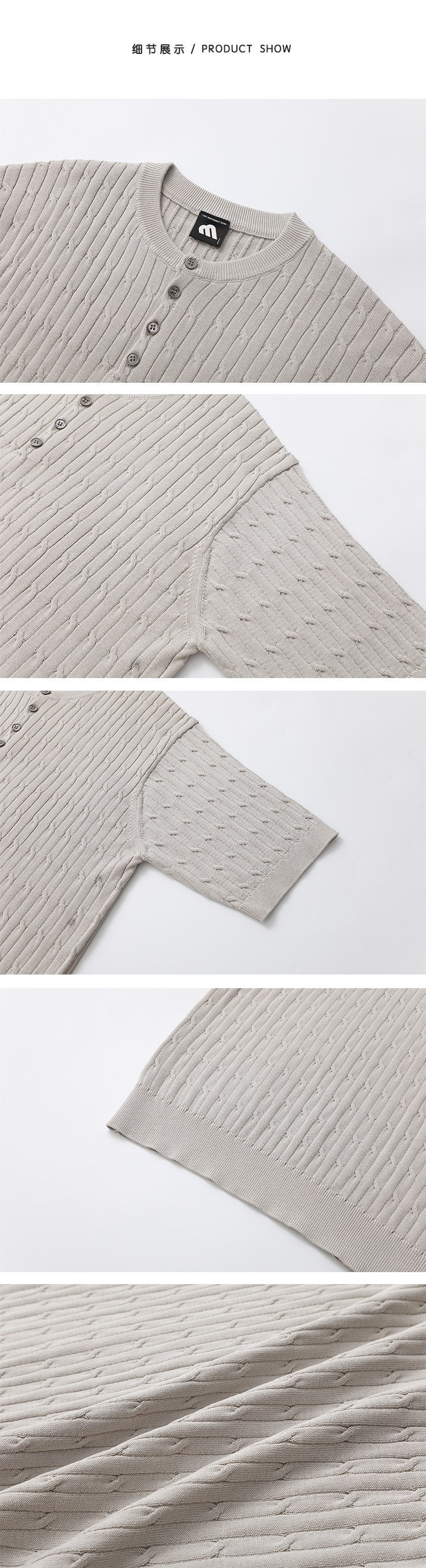 MYQ 올드 머니 스타일 니트 반팔 티셔츠 남성 여름 루즈 헨리 칼라 쇼트 T 한국 통근 다용도 탑