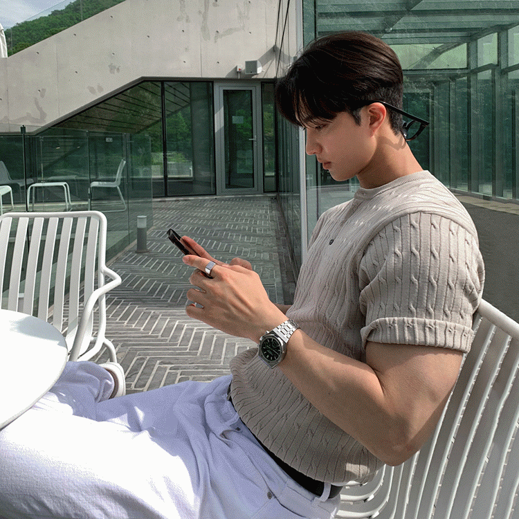 MYQ 올드 머니 스타일 니트 반팔 티셔츠 남성 여름 루즈 헨리 칼라 쇼트 T 한국 통근 다용도 탑스토어 가기
