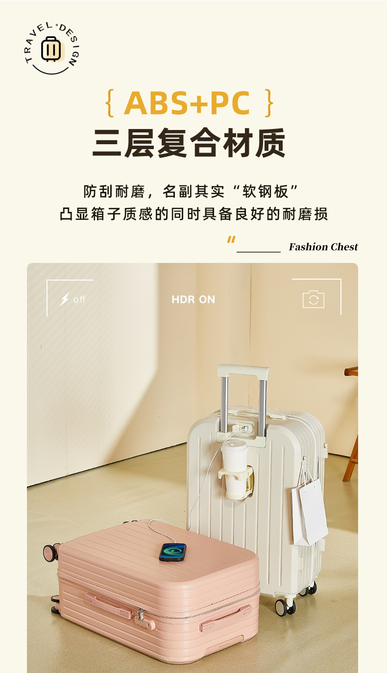 새로운 스타일의 여행 가방 여성용 트롤리 케이스 남성용 강력하고 내구성이 뛰어난 학생 범용 휠 20inch 비밀번호 가방 소형 가죽 케이스