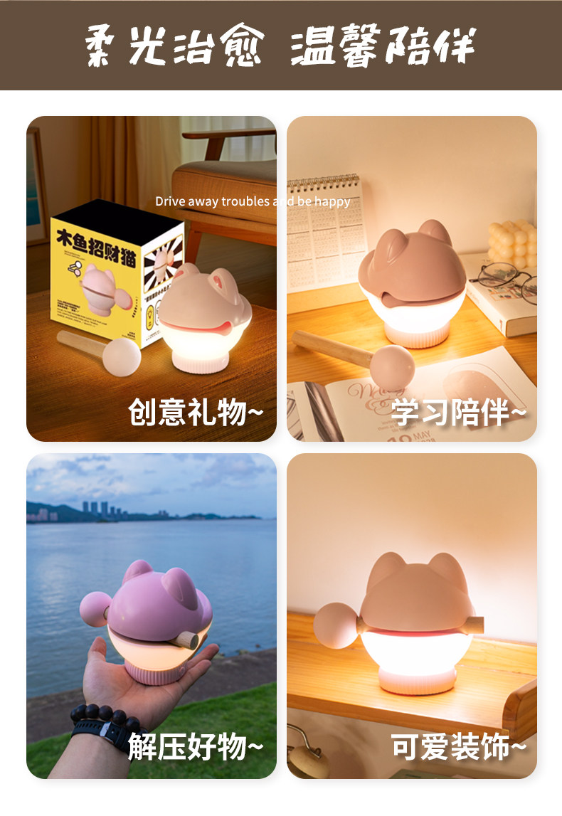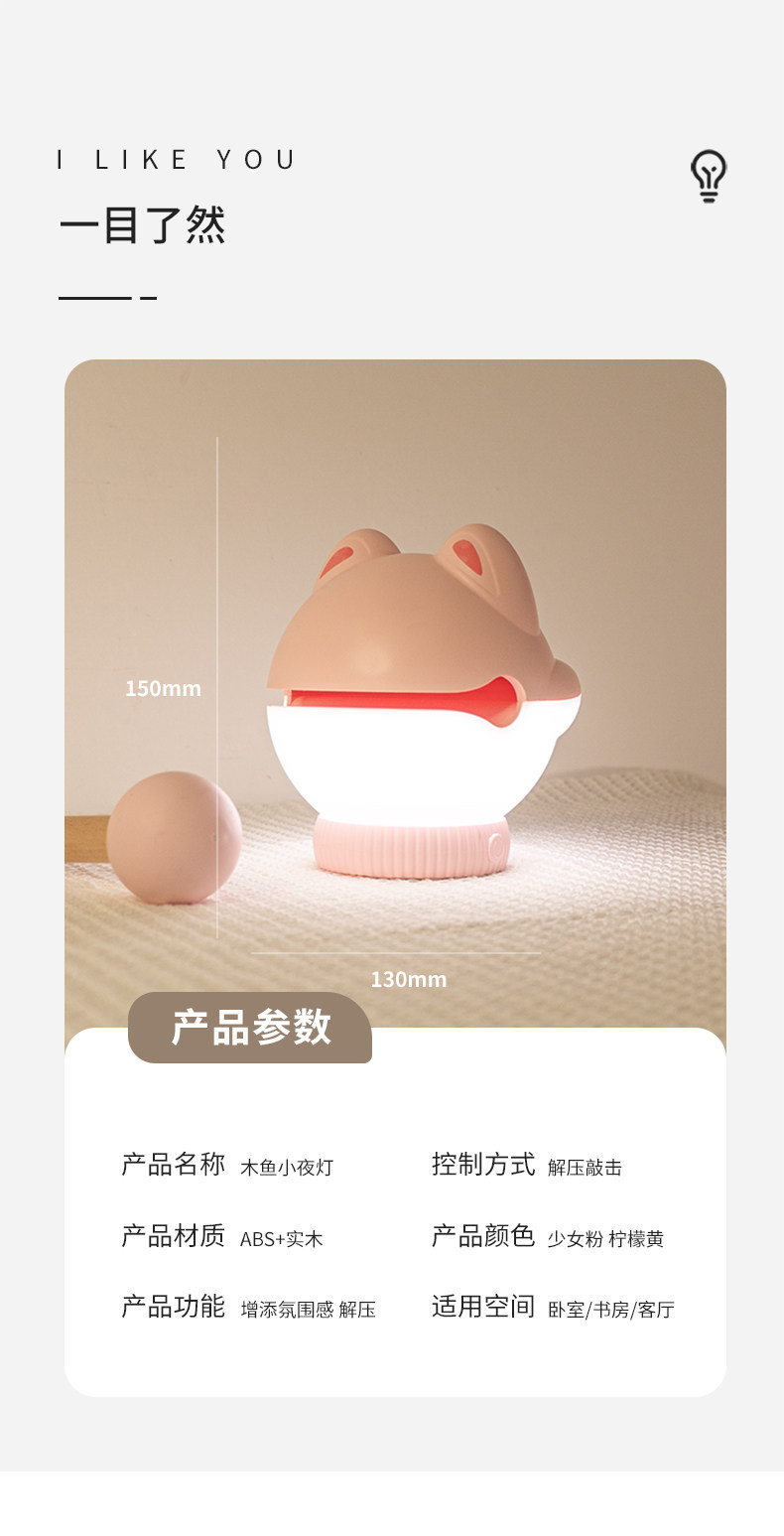 나무 물고기 모양 스트레스 해소 침실 장식품 침대 옆 램프, 여자친구 선물용 충전식 무드등, 밝기 조절 가능한 LED 램프스토어 가기