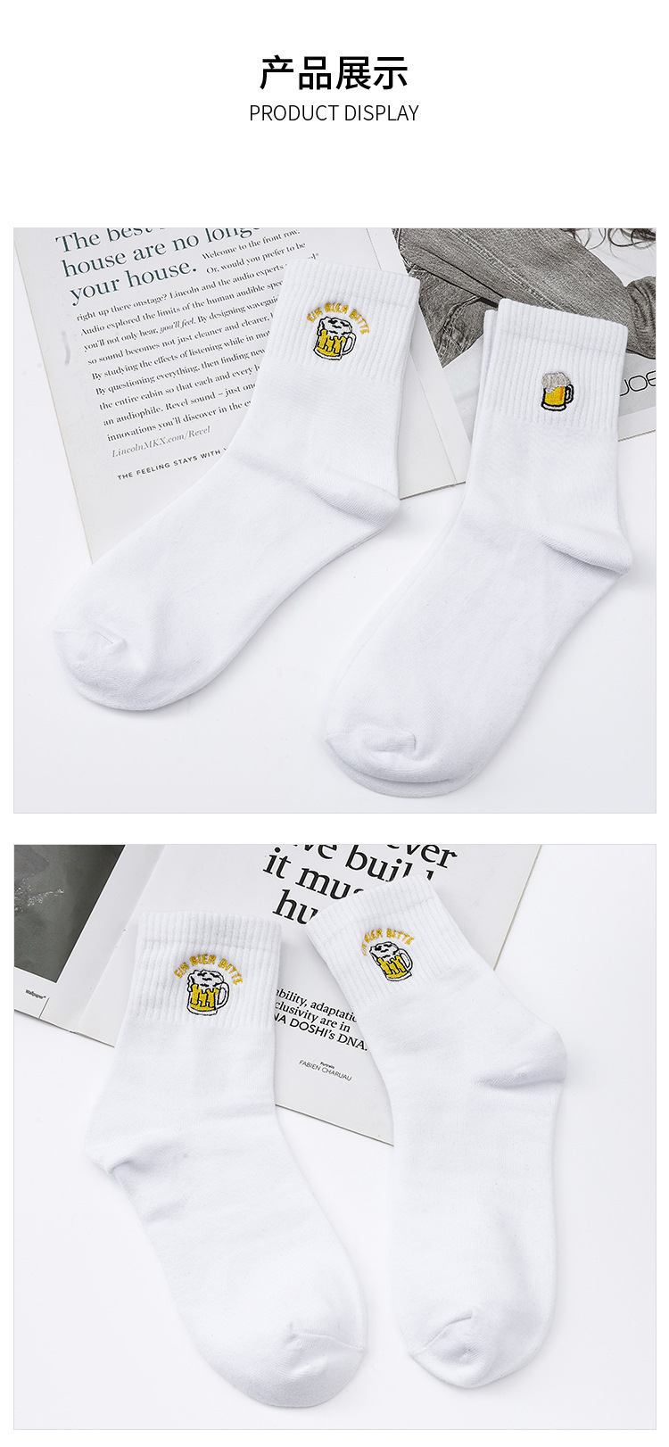 맥주 스포츠 종아리 양말 통기성 크로스 보더면 양말 도매 흰색 긴 양말 남성과 여성 탈취제 자수 양말스토어 가기