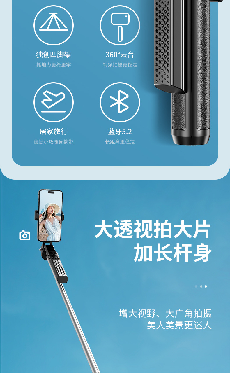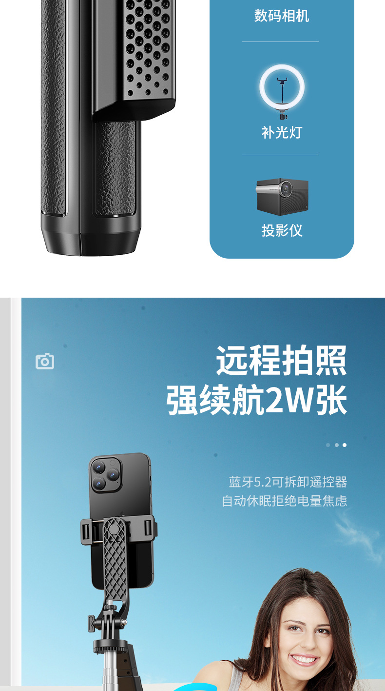 便携式直播支架蓝牙遥控视频直播架手机自拍杆跨境热销 P520TK