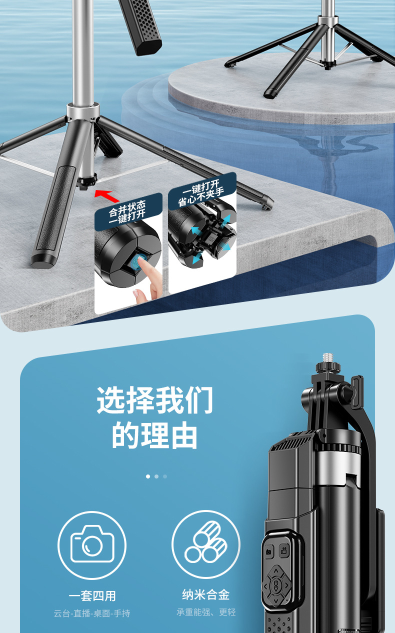 휴대용 라이브 스트리밍 스탠드 블루투스 원격 제어 비디오 라이브 스트리밍 스탠드 휴대 전화 셀카 스틱 크로스 보더 핫 세일 P520TK스토어 가기