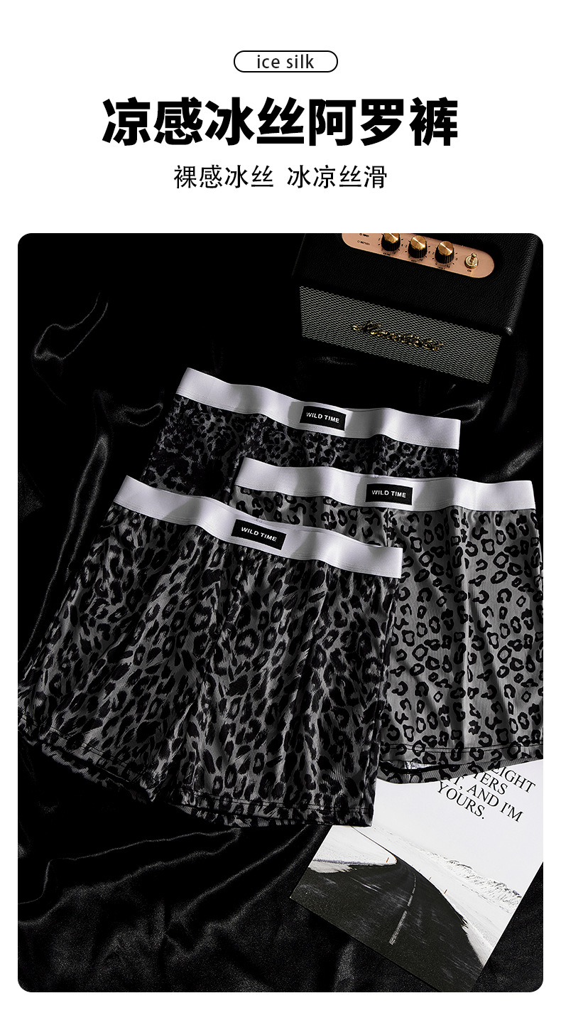 새로운 레오파드 남성 속옷 얼음 실크 여름 통기성 긴 다리 바지 항균 남자 개성 청소년 사각형 도매스토어 가기