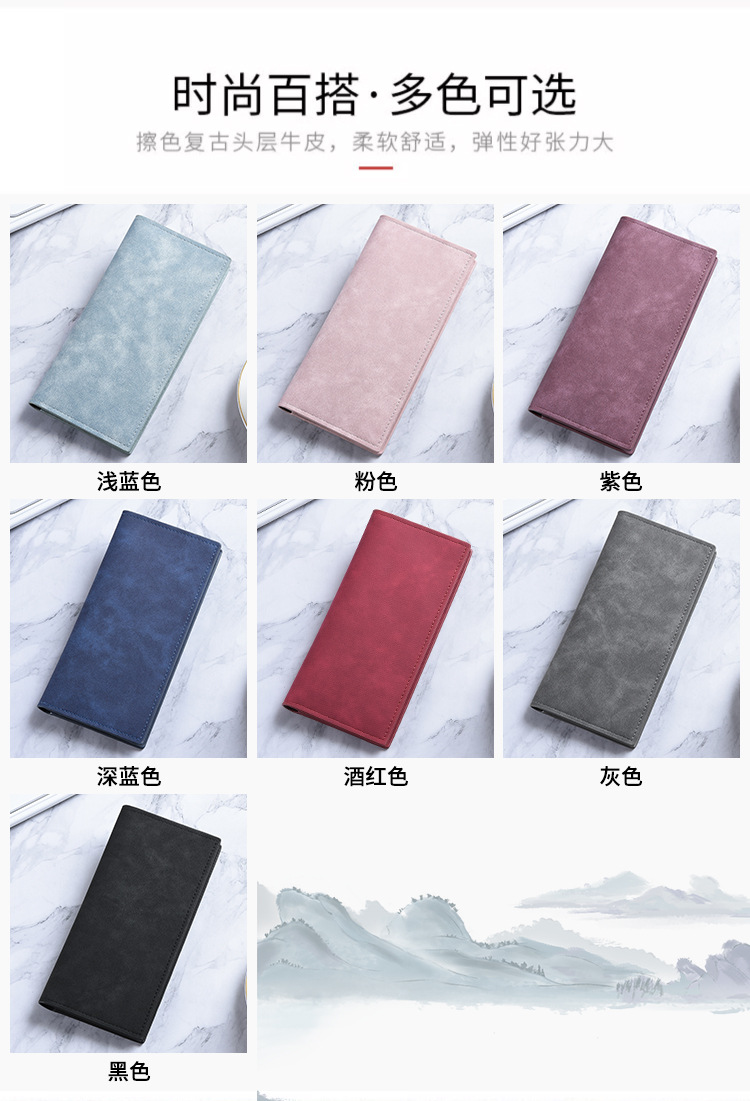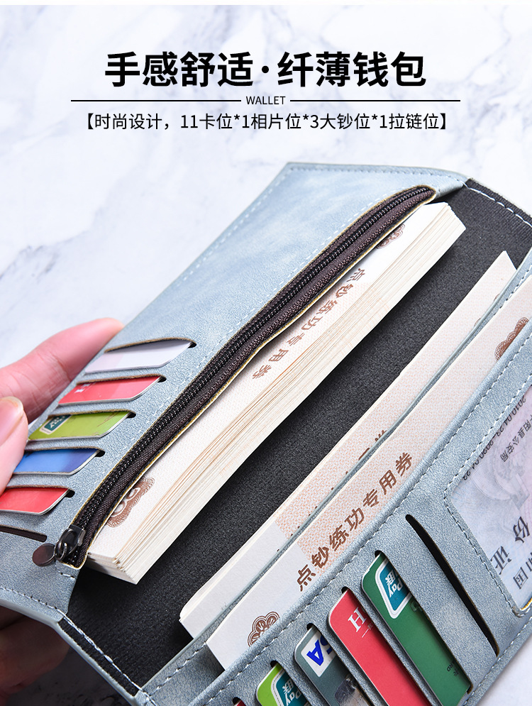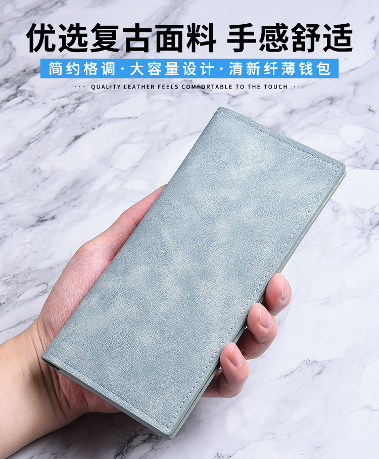 남성용 지갑 롱 초박형 멀티 카드 슬롯 심플 소프트 가죽 카드 홀더 대용량 학생 복고풍 지퍼 동전 지갑스토어 가기