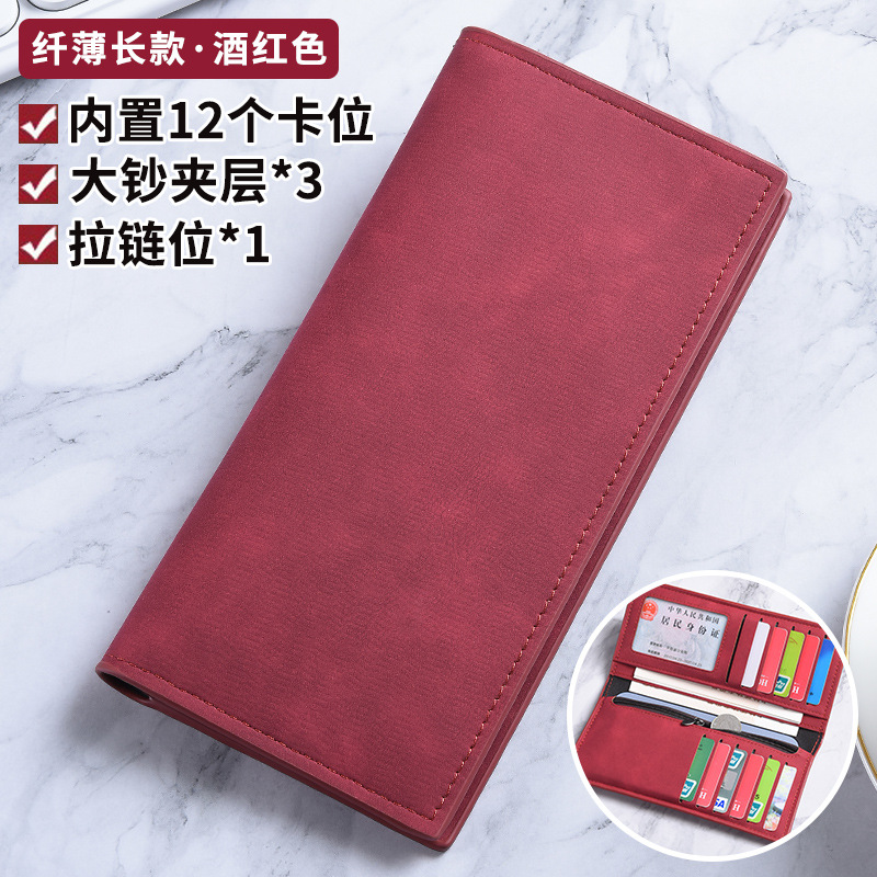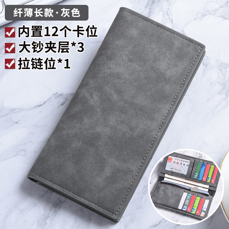 남성용 지갑 롱 초박형 멀티 카드 슬롯 심플 소프트 가죽 카드 홀더 대용량 학생 복고풍 지퍼 동전 지갑