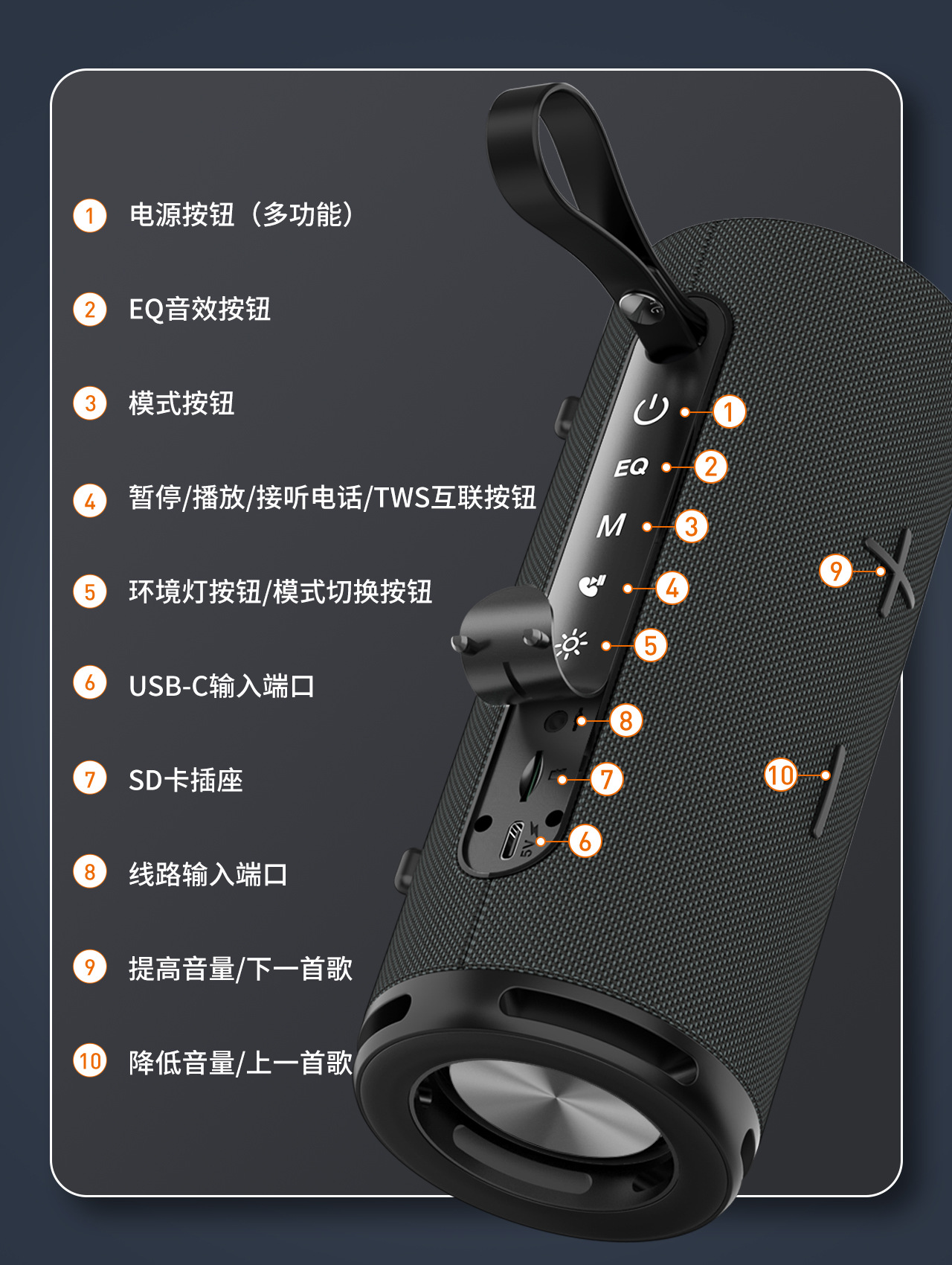 무선 Bluetooth 5.3 스테레오 스피커 야외 휴대용 게임 서브우퍼 TWS 삽입형 SD 카드 오디오의 국경 간 전문 공급스토어 가기