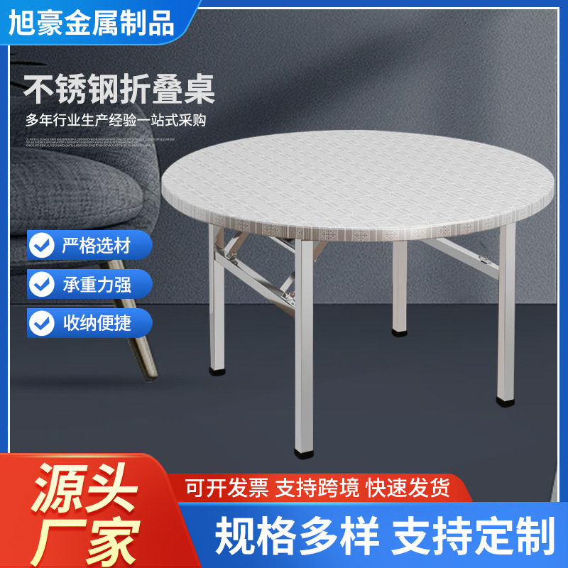 304 스테인레스 스틸 접이식 원형 테이블 야외 거실 경제적 인 가정용 식탁 임대실 식사 원형 테이블스토어 가기