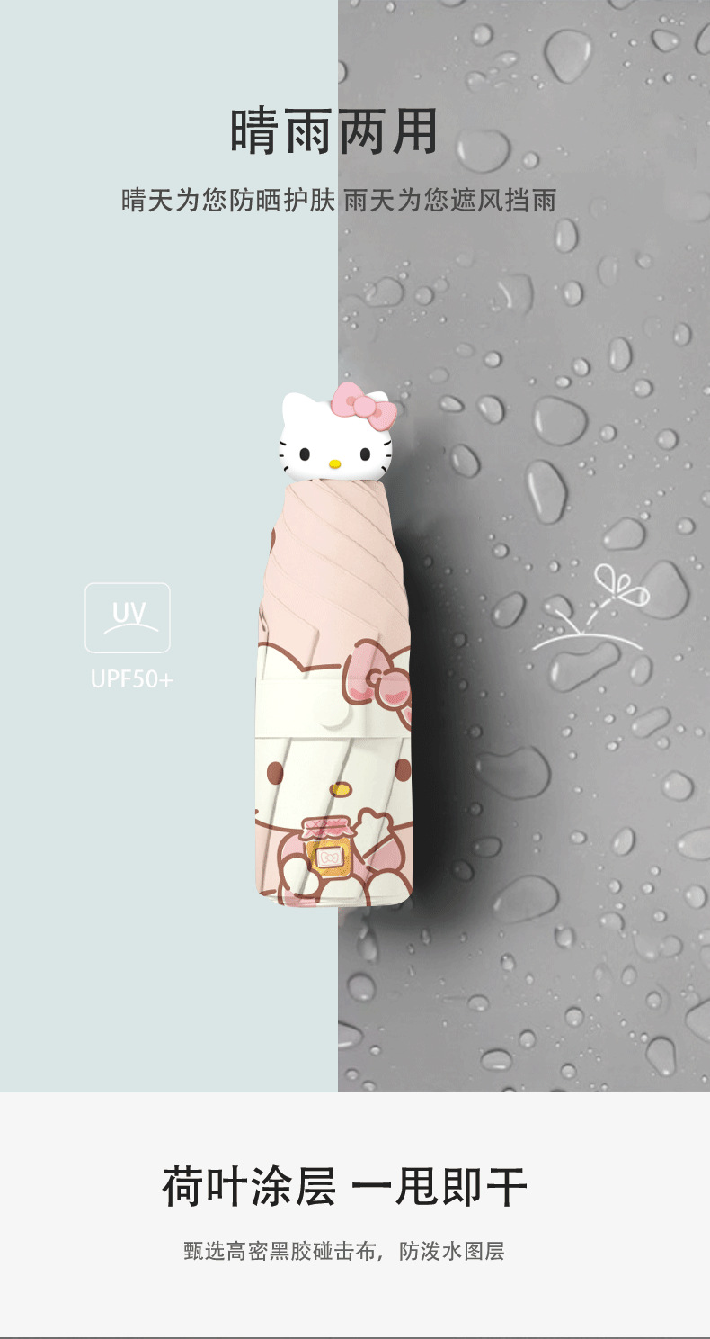 Sanrio 정품 멜로디 입체 인형 머리 작은 50% off 우산 여름 자외선 차단 차양 고가치 수동 우산
