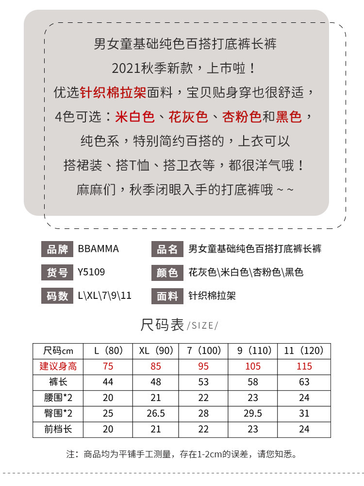 한국 스타일 여아 레깅스, 가을 스타일, 남녀 아동용 바지, 단색 바지, 가을 바지