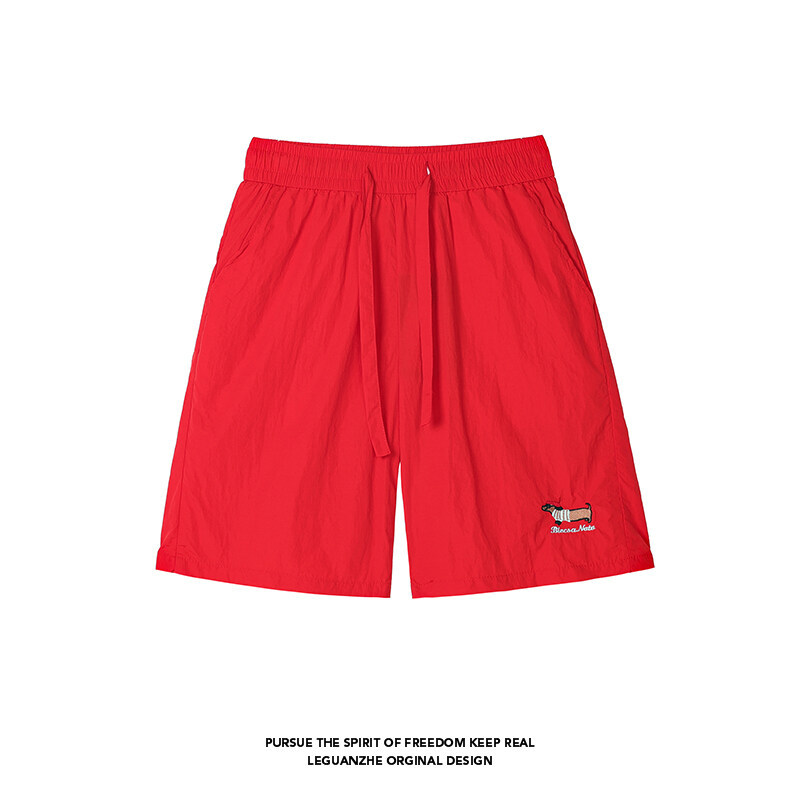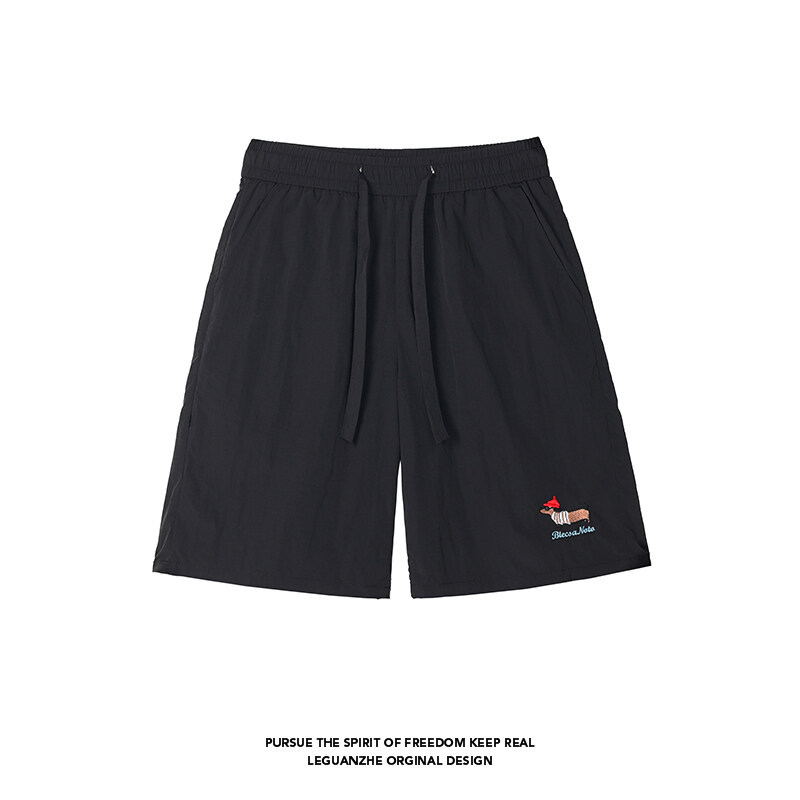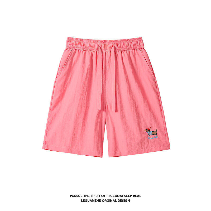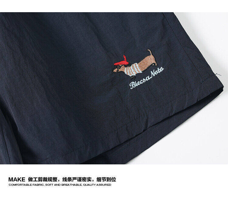 소시지 강아지 자수 반바지 남성 여름 얇은 체크무늬 스포츠 반바지 루즈핏 대형 사이즈 중간 길이 바지스토어 가기