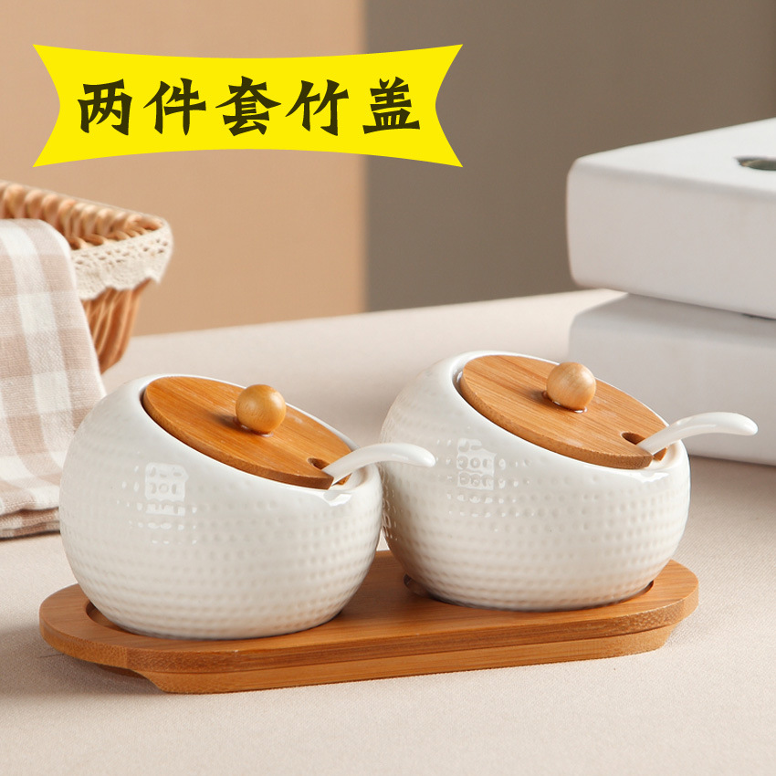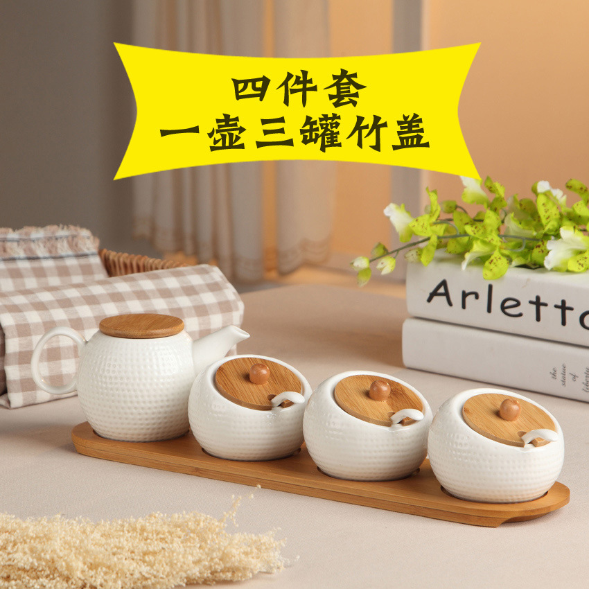 가정용 세라믹 조미료 항아리 세트 조미료 병 항아리 조미료 상자 소금 항아리 고추 항아리 주방 용품 뚜껑이있는 조미료 상자스토어 가기