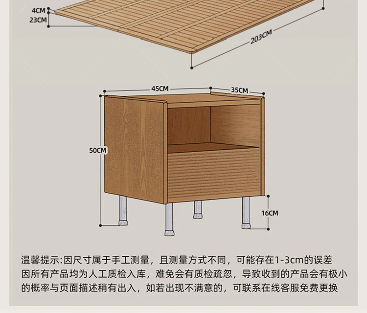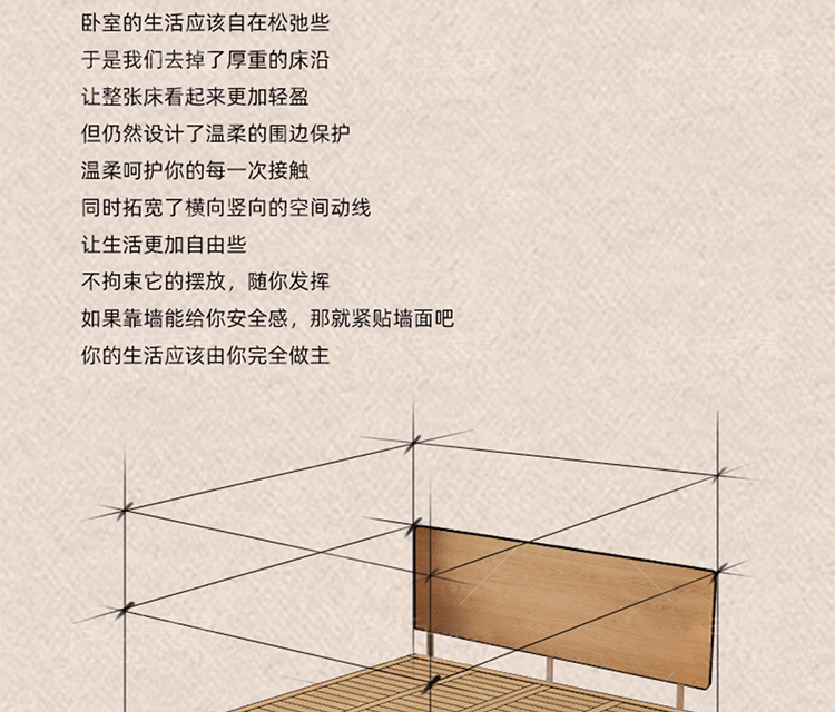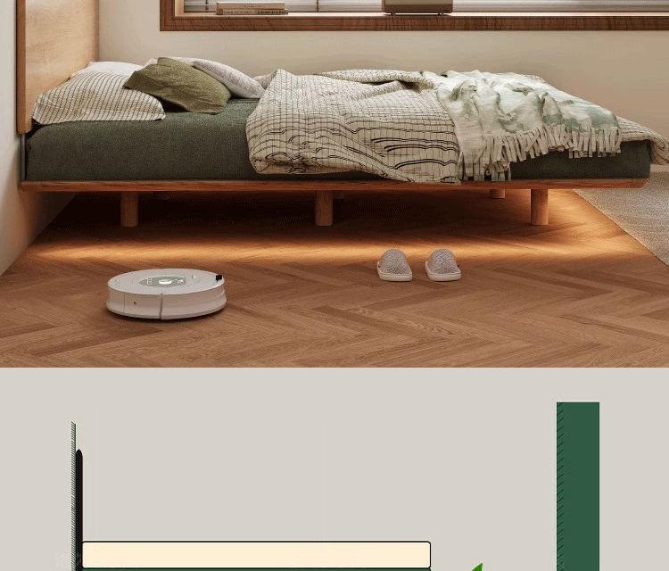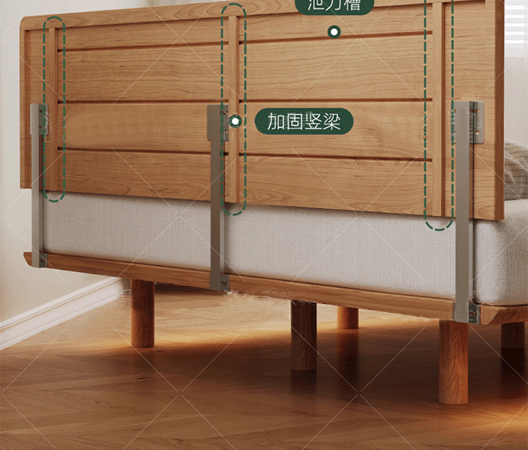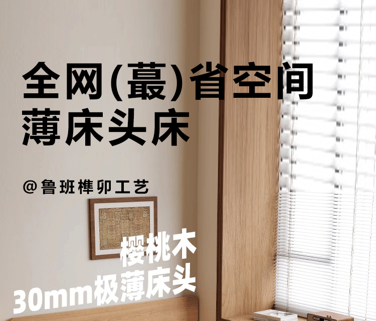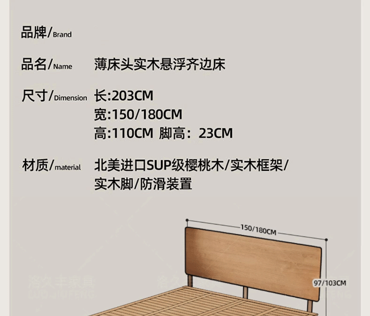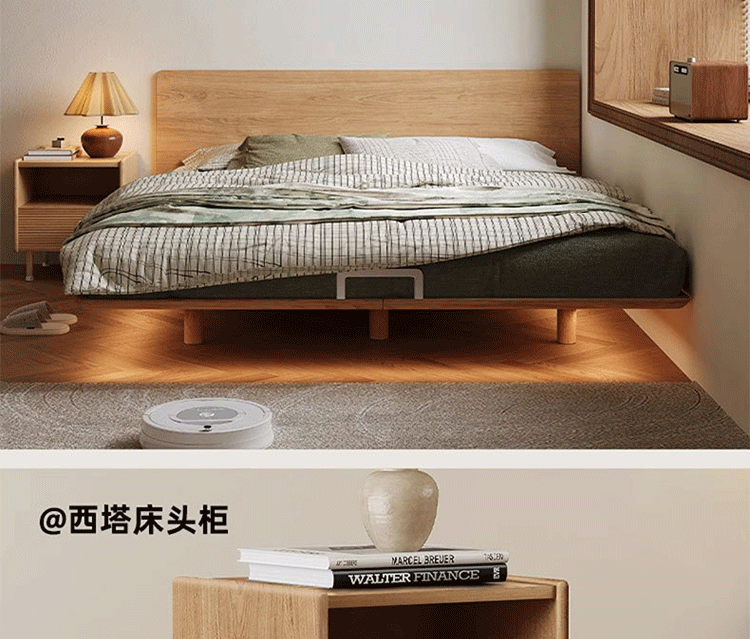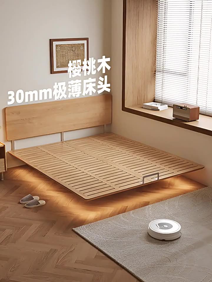 초슬림 침대 옆 침대, 균일한 가장자리의 공중 침대, 체리 원목 원목 침대 1.5m 북유럽 마스터 침실 더블 침대스토어 가기