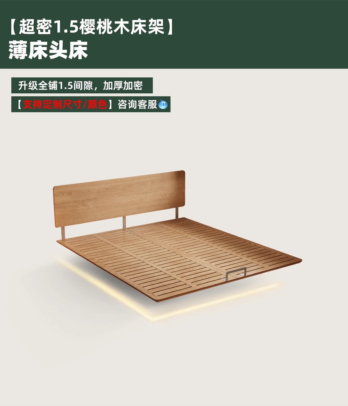 • 조명 없음-[초밀도 1.5 체리나무 침대 프레임] 침대(30mm 얇은 침대 헤드)