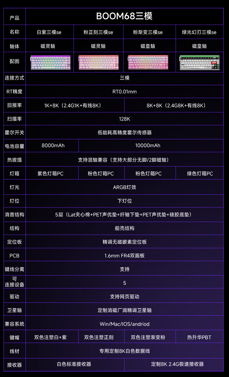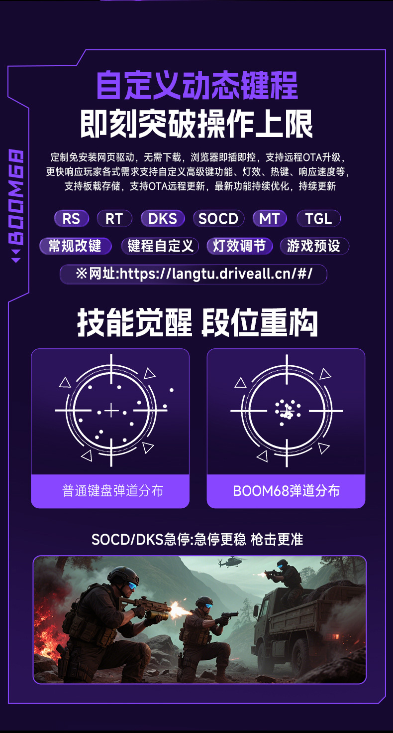 狼途BOOM68三模磁轴机械键盘电竞游戏客制化TTC天王轴SE无线键盘