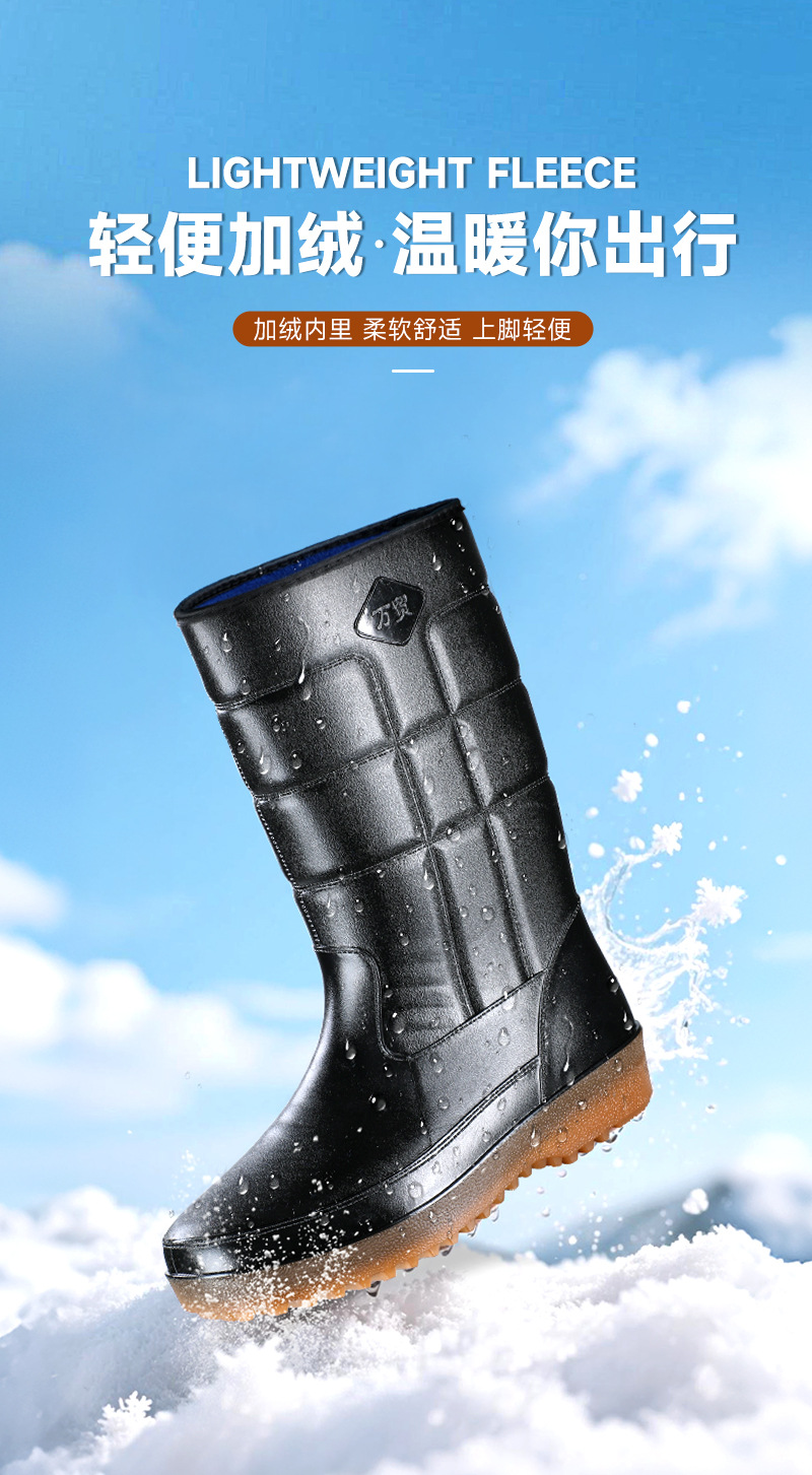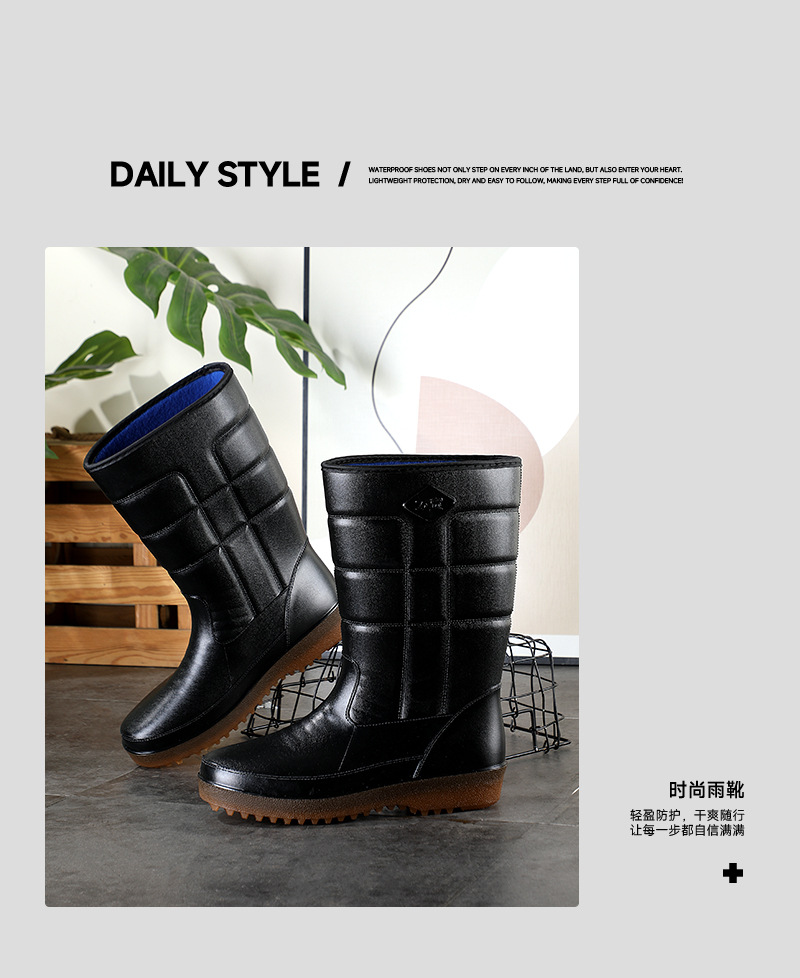 Wanmao 장화 질감 노동 보호 두꺼운 밑창 미끄럼 방지 방수 가죽 짧은 부츠 내구성 플러스 벨벳 패션 장화 남성과 여성을 따뜻하게 유지스토어 가기