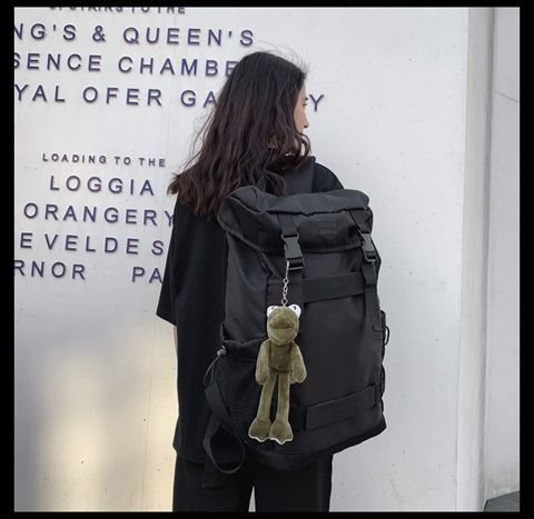 • 개구리 펜던트가 달린 검은색 가방